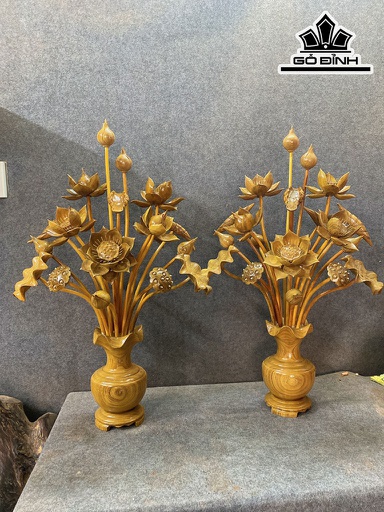 Cặp Bình Hoa Sen 11 Bông Gỗ Ngọc Am Kích Thước 75-45 (cm)