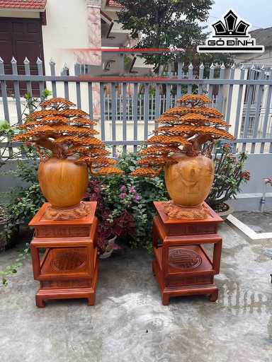 Chậu Tùng Bonsai Gỗ Trắc Cao 62 Ngang 59 Sâu 20 (cm)