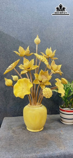 Cặp Bình Hoa Sen 11 Bông Gỗ Ngọc Am Kích Thước 75-45 (cm)