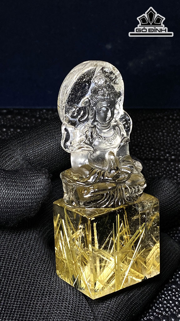 Ấn Hoàng Thần Tài Bảo Thiên Đá Thạch Anh Tóc Vàng Cao 72,4 Ngang 35 Sâu 31 (mm) 115gr