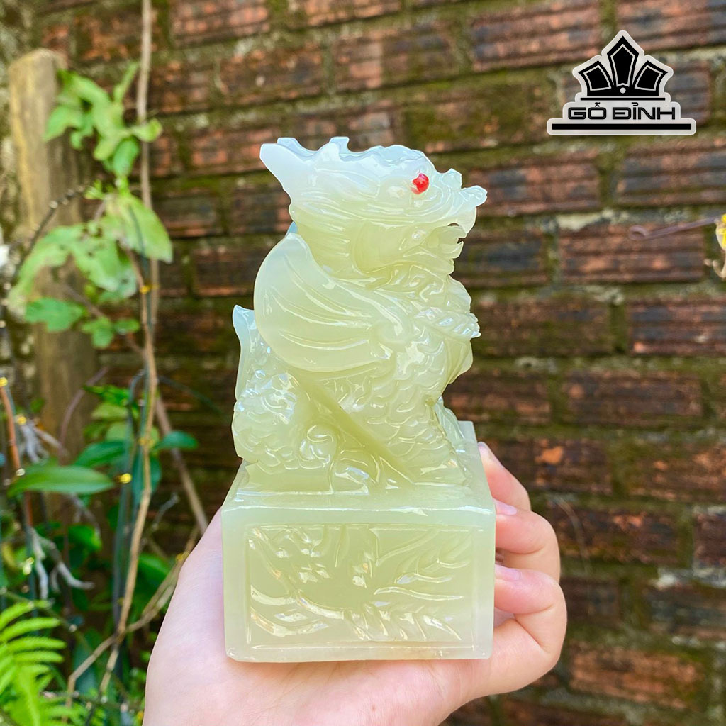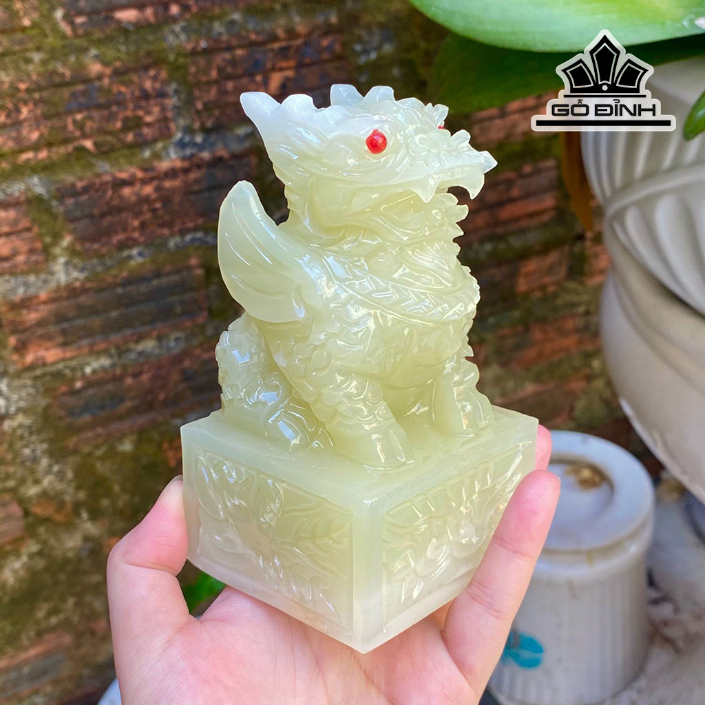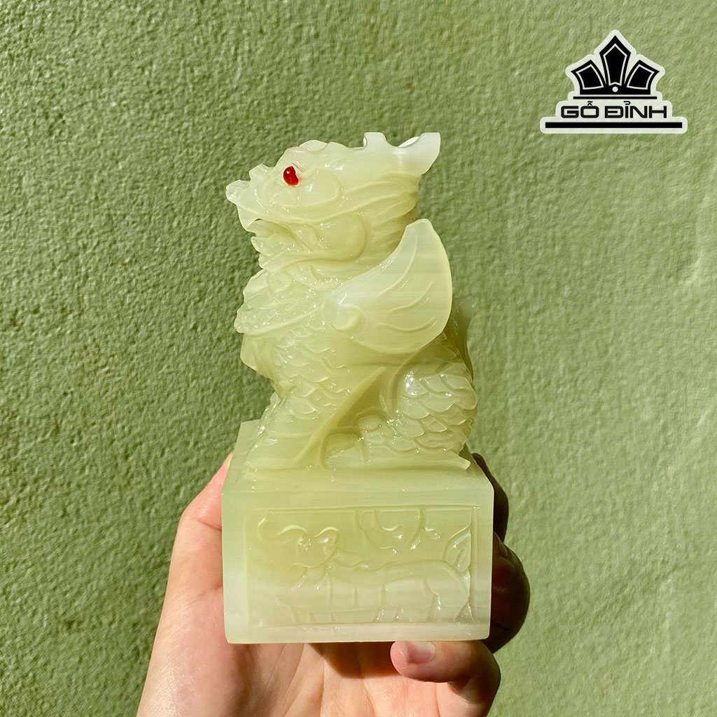 Ấn Kỳ Lân Đá Onyx Xanh Cao 12 (cm)