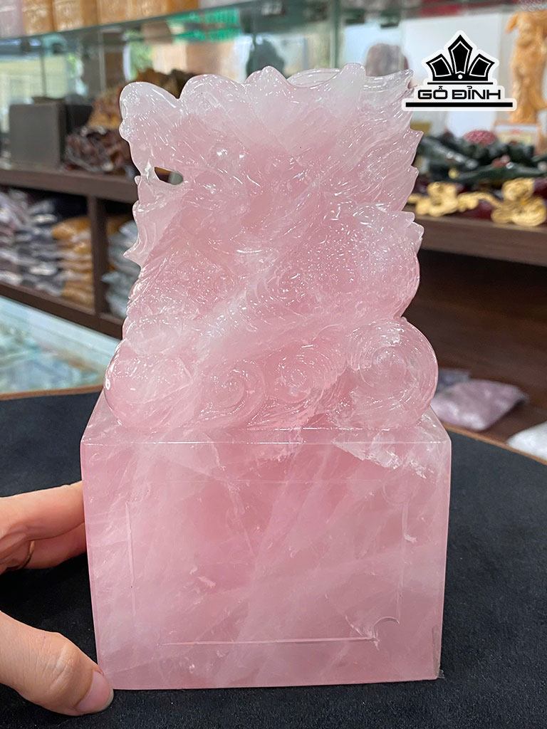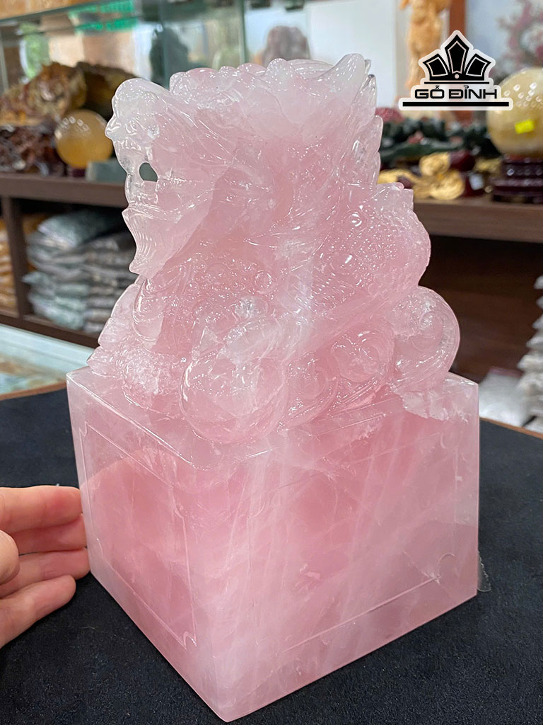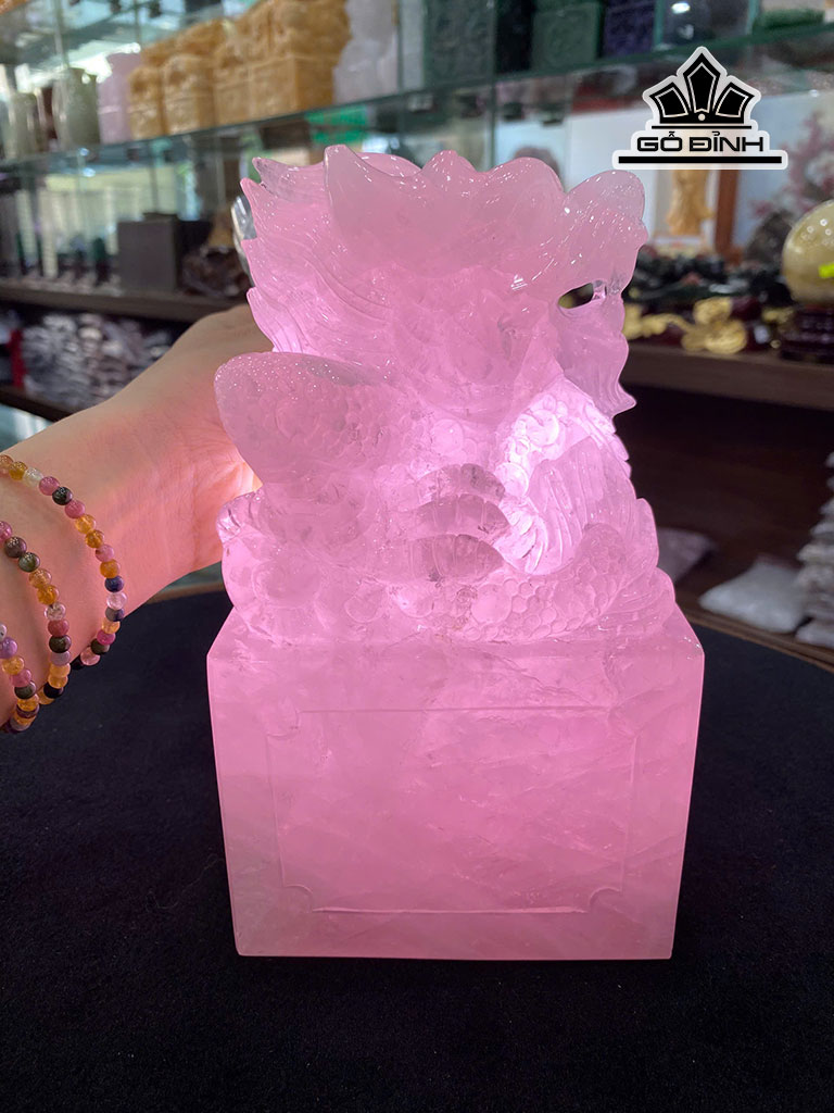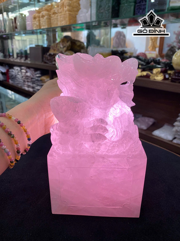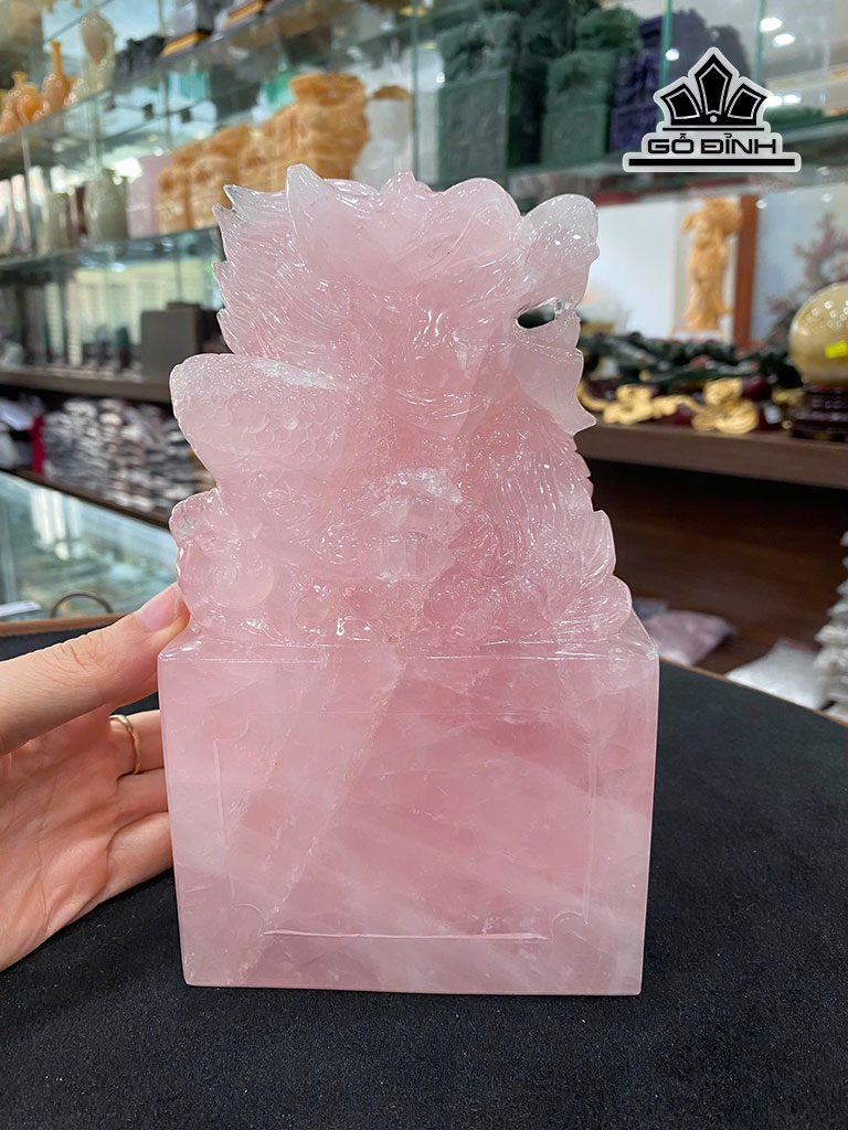 Ấn Rồng Đá Thạch Anh Hồng Cao 19,5 Ngang 11 Sâu 10,5 (cm)