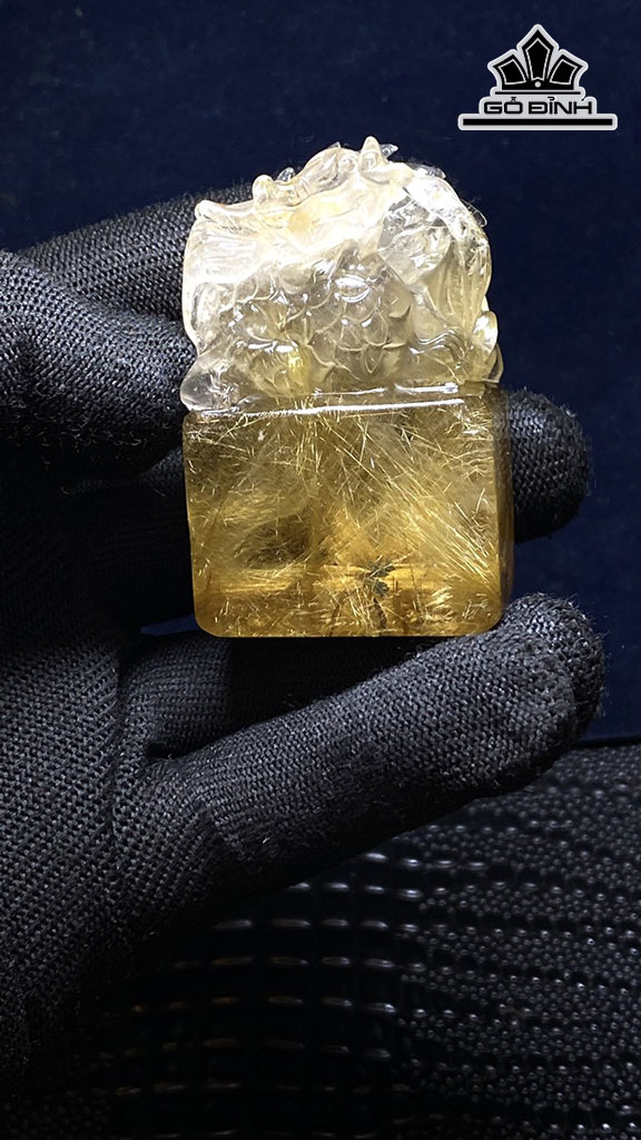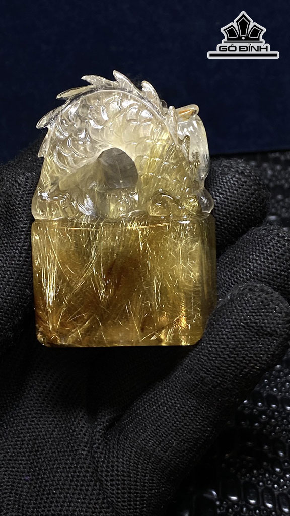 Ấn Rồng Hoa Thị 6 Cánh Đá Thạch Anh Tóc Vàng Cao 56 Ngang 36 Sâu 26 (mm) 94,9g