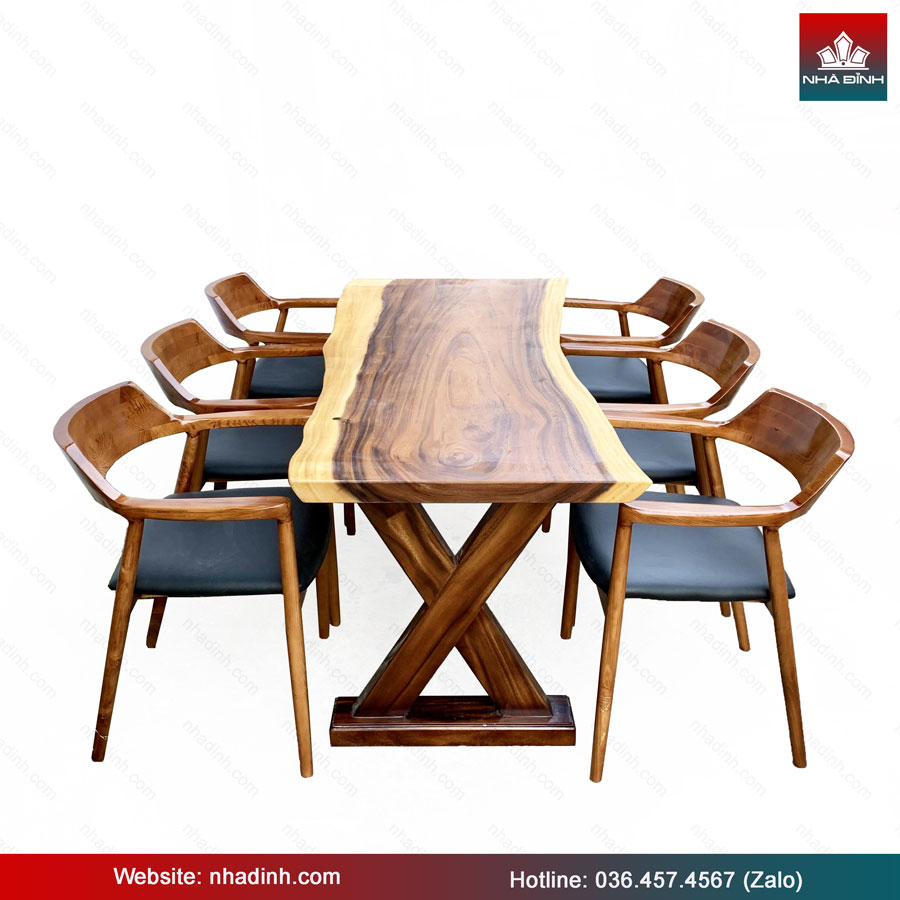 Bàn Ăn 6 Ghế Gỗ Me Tây Nguyên Khối Dài 185 Rộng 70-66-80 Cao 75 (cm)