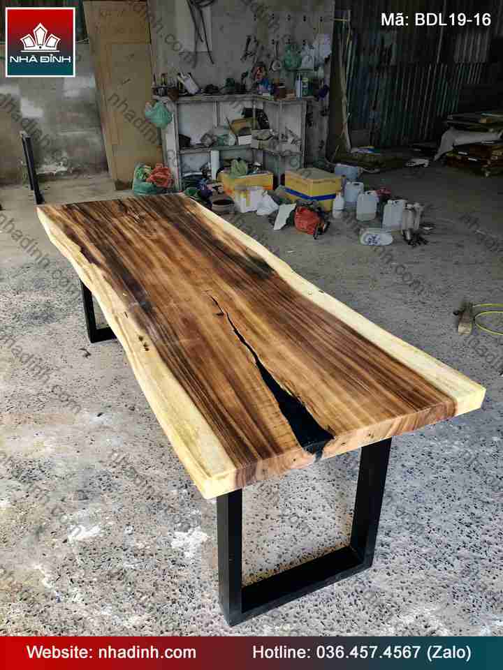 Bàn Ăn Gỗ Me Tây Nguyên Khối Dài 236 Rộng 85-72.5-75 Dày 5.5 (cm)