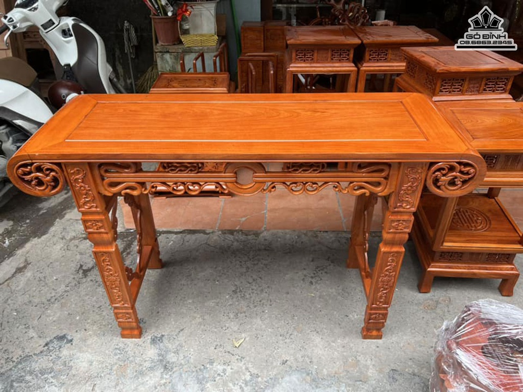 Bàn Cuốn Gỗ Hương Cao 80 Ngang 127 Rộng 40 (cm)