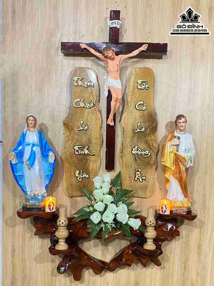 Bàn Thờ Công Giáo Gỗ Hương Cao 145 Ngang 95 Tượng Cao 50 (cm)