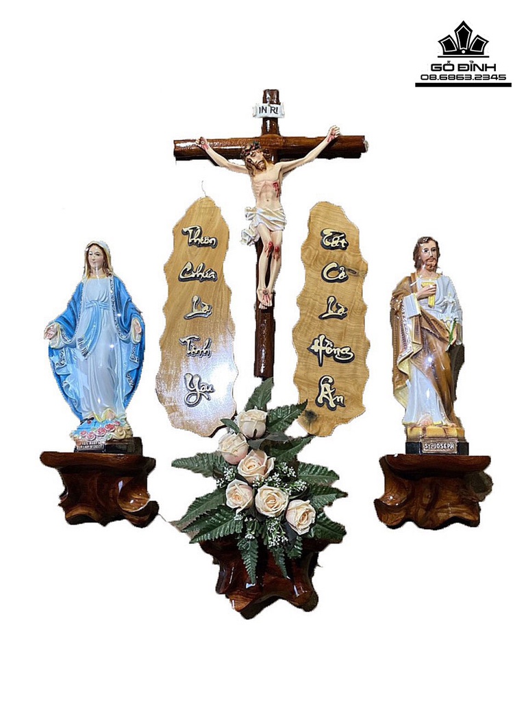 Bàn Thờ Cồng Giáo Gỗ Hương Cao 135 Ngang 95 Tượng 50 (cm)