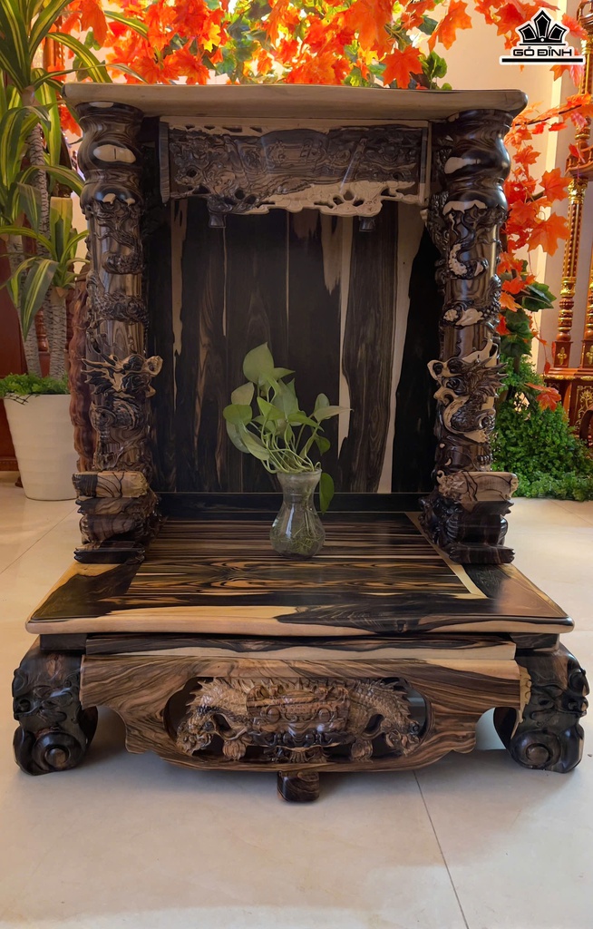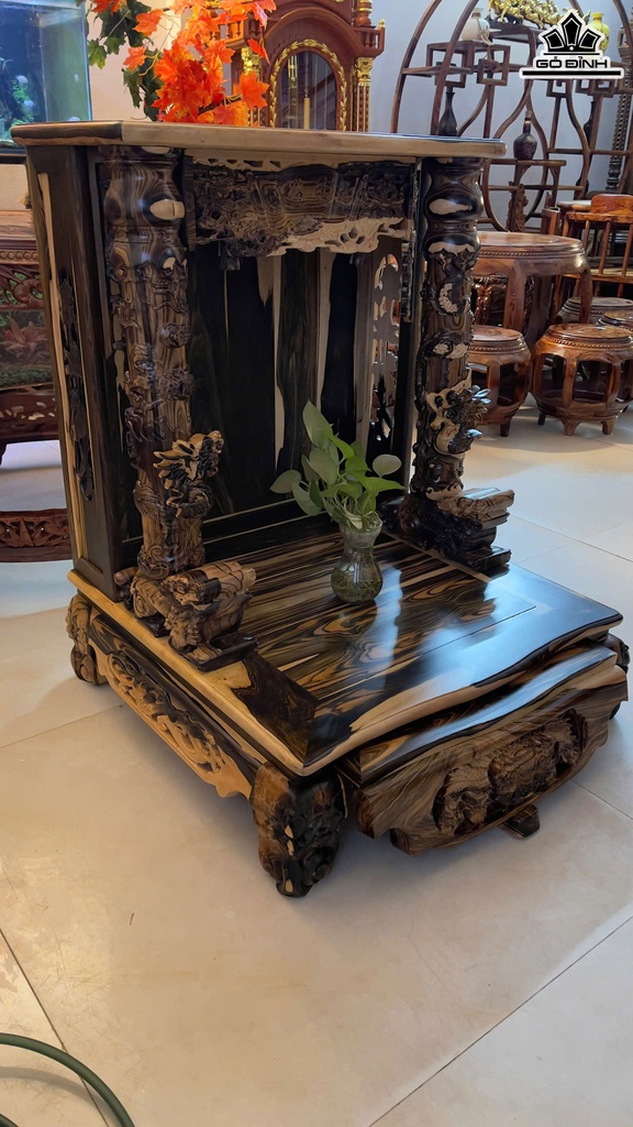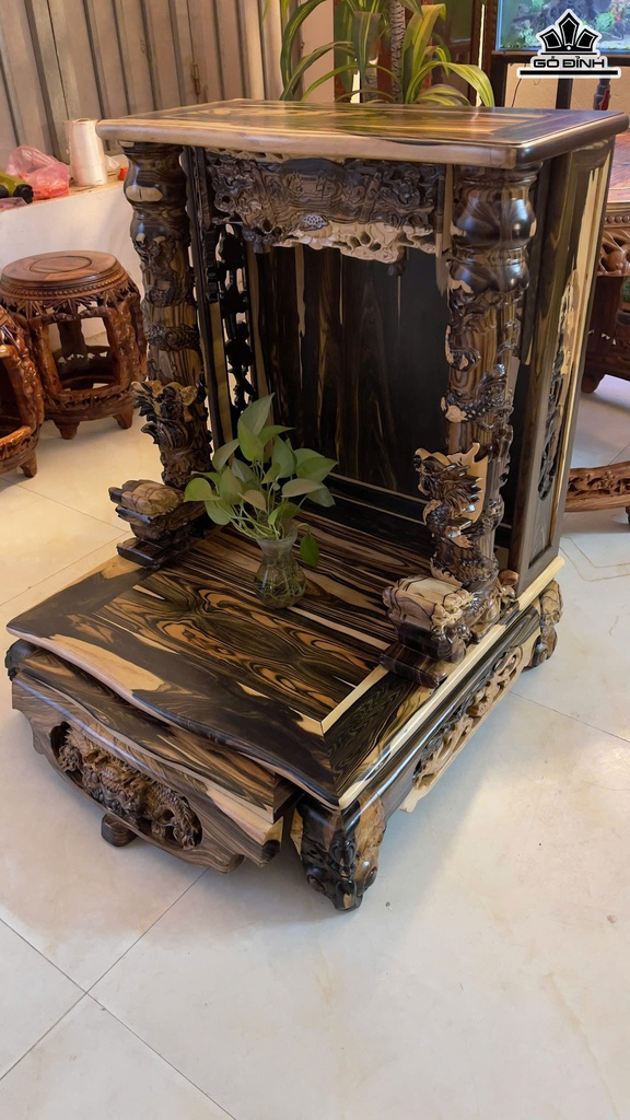 Bàn Thờ Thần Tài Gỗ Mun Hoa Cao 89 Ngang 68 Sâu 68 (cm)