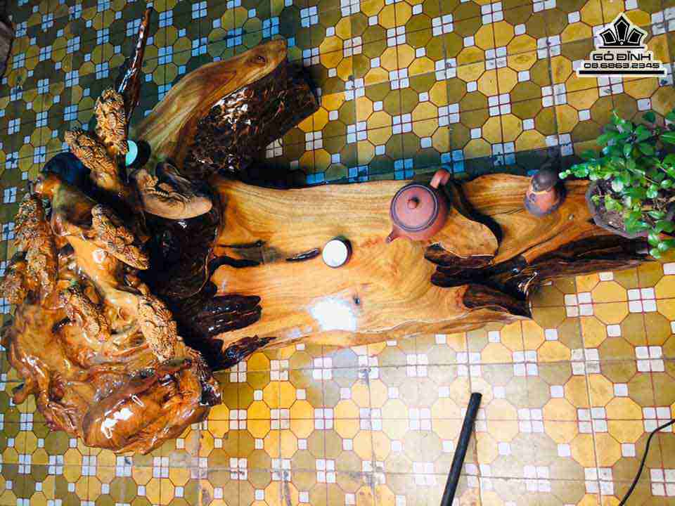 Bàn Trà Đục Tùng Trâu Nguyên Khối Gỗ Xá Xị ( Gù Hương ) Dài 130 Rộng 80 Cao 55 (cm)