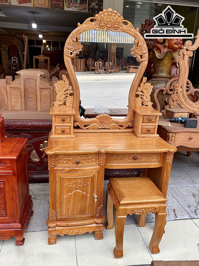 Bàn Trang Điểm Gỗ Gõ Đỏ (Cà te) Cao 70 Ngang 90 Sâu 43 (cm)