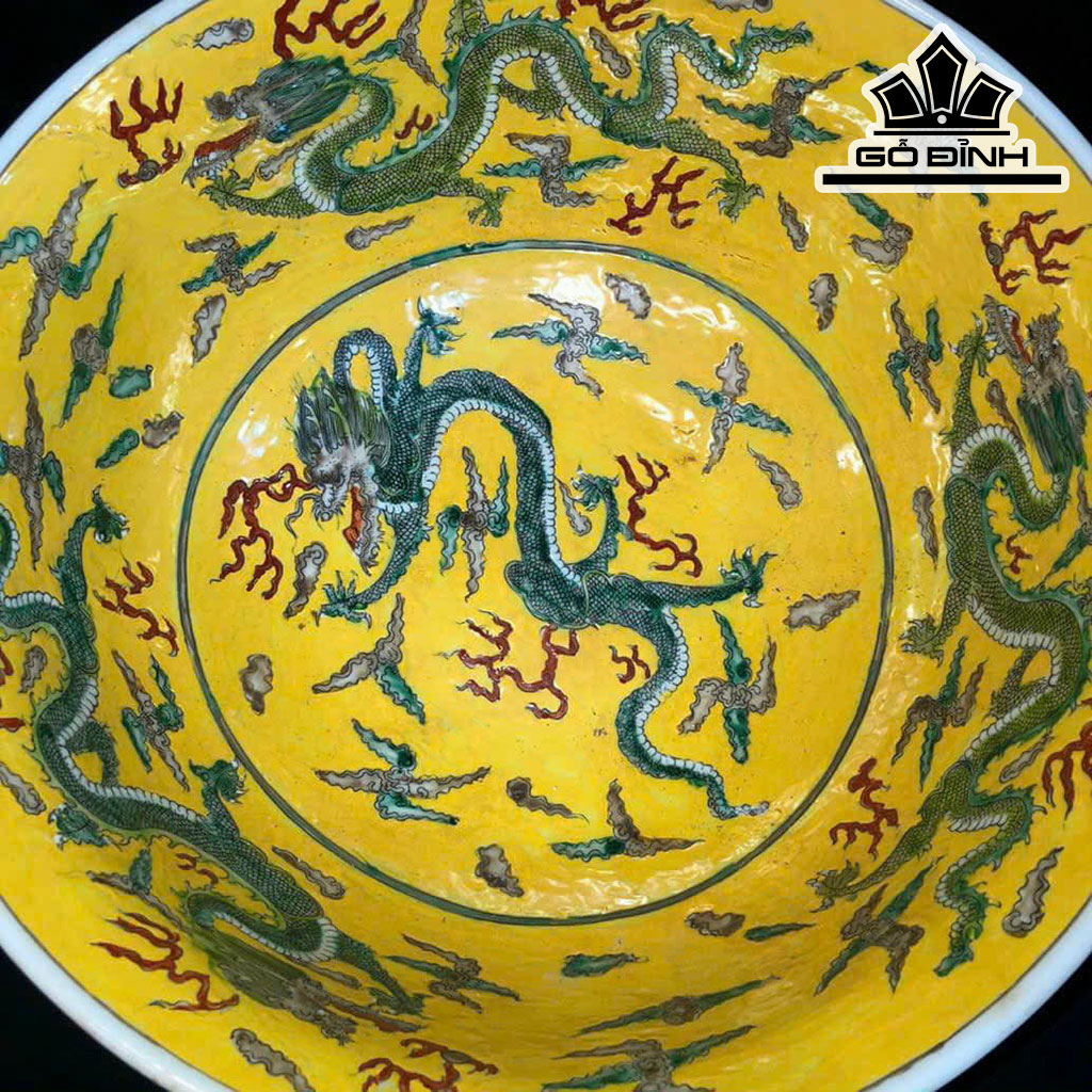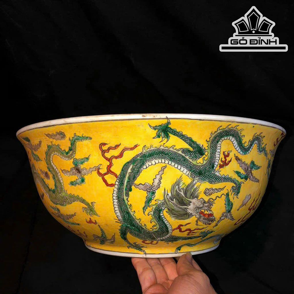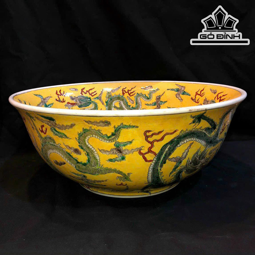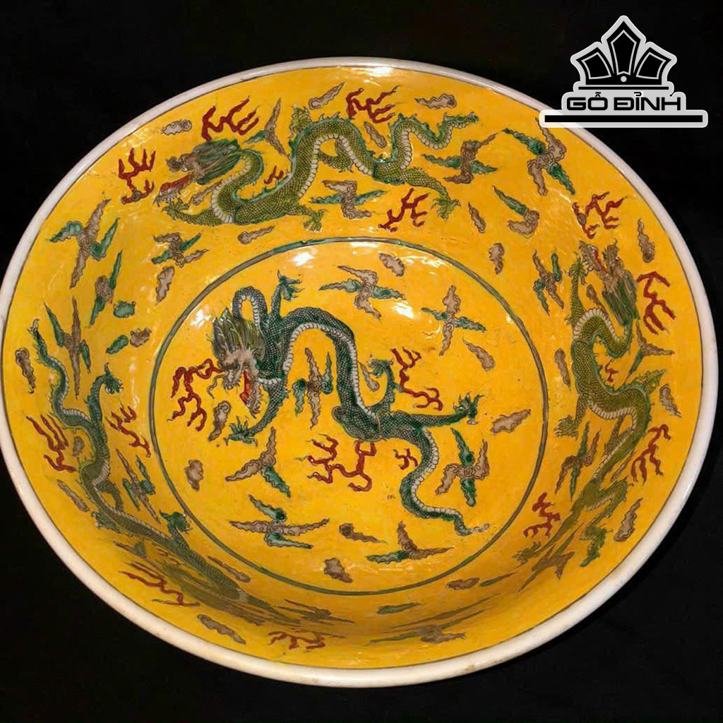 Bát Rồng Men Vàng Hoàng Đế Gốm Tàu Cao 16 Đường Kính Miệng 41 (cm)