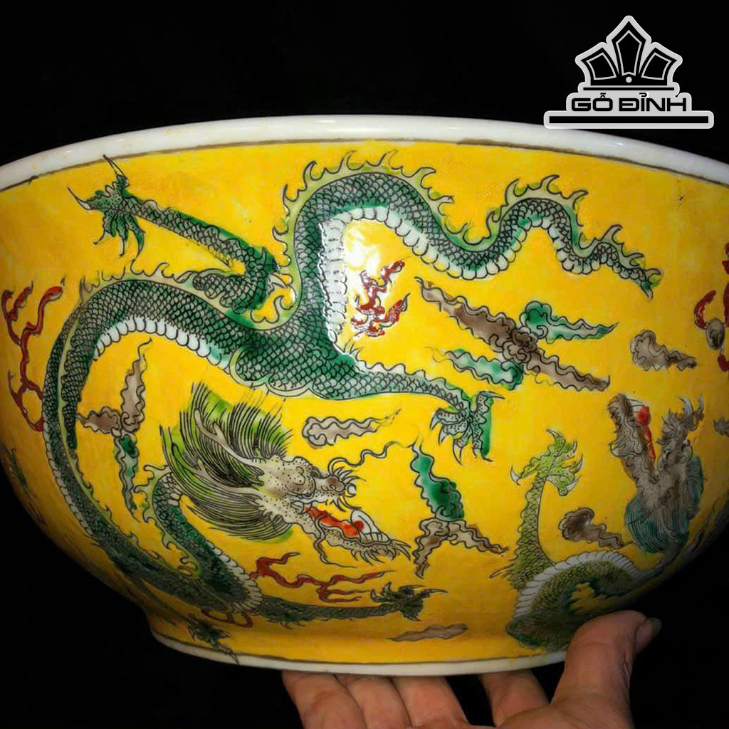 Bát Rồng Men Vàng Hoàng Đế Gốm Tàu Cao 16 Đường Kính Miệng 41 (cm)