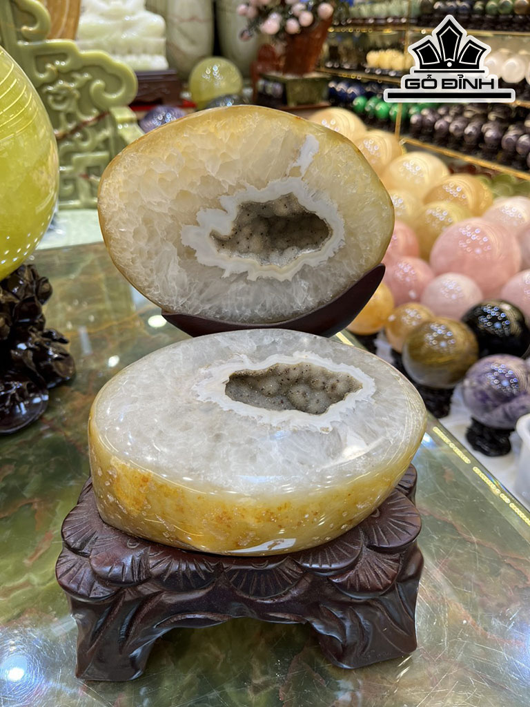 Bát Tụ Bảo Đá Mã Não Vàng Cao 26 Ngang 23 15(cm)