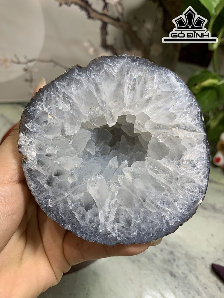Bát Tụ Bảo Đá Thạch Anh Trắng Cao 14 Ngang 14,5 Sâu 15 (cm) 1,4kg