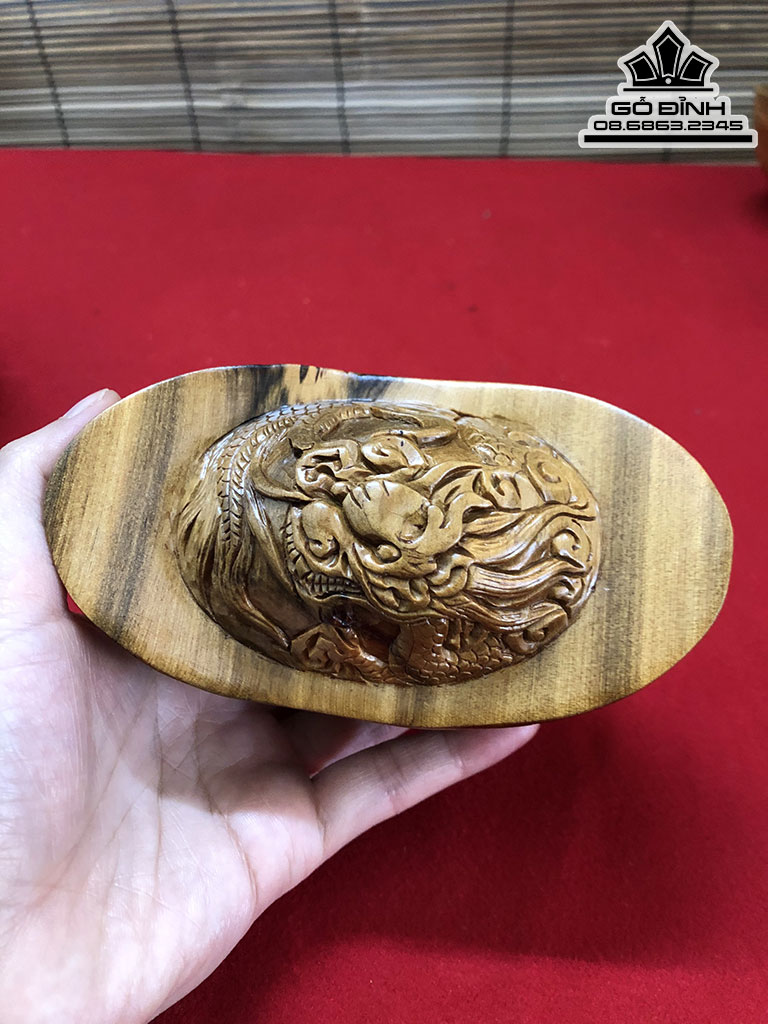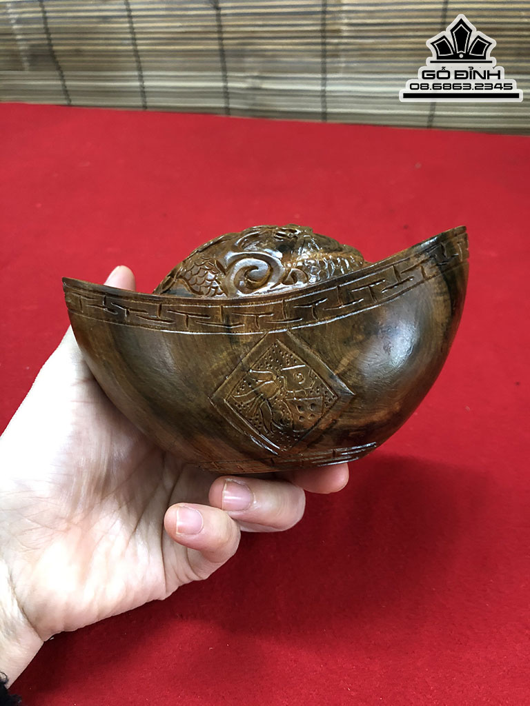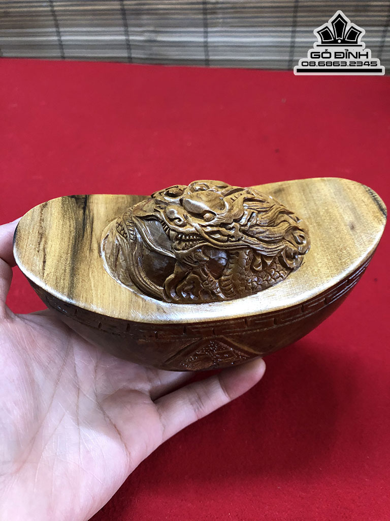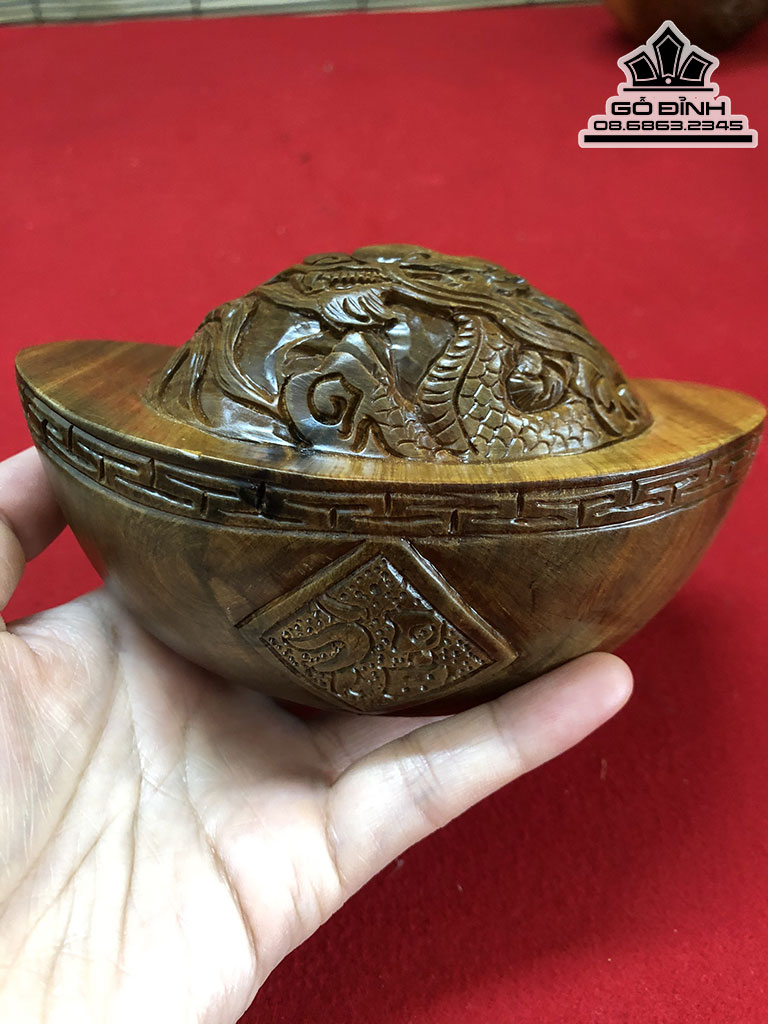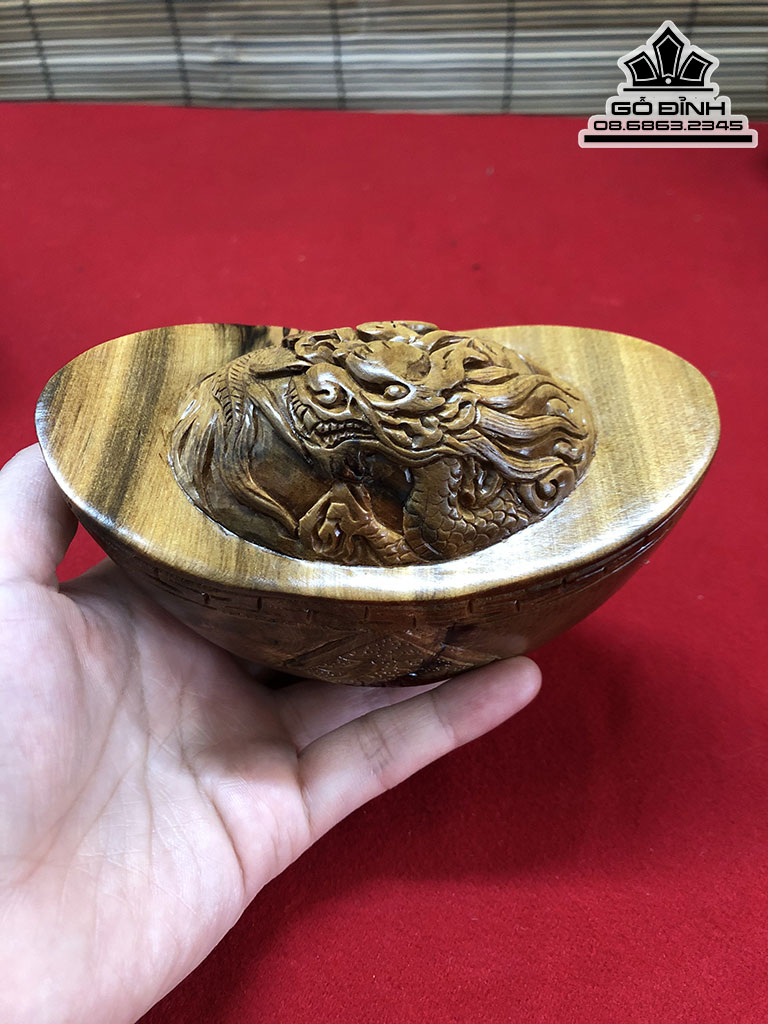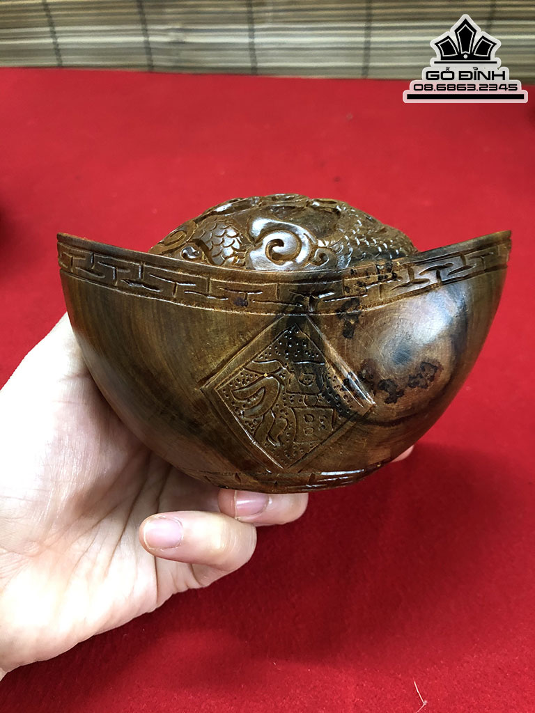 Bát Vàng Đục Rồng Gỗ Bách Xanh Cao 7 Dài 13 Sâu 7 (cm)