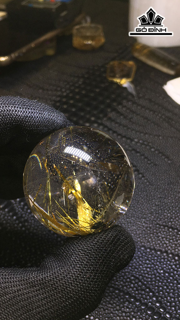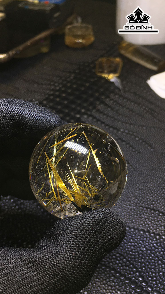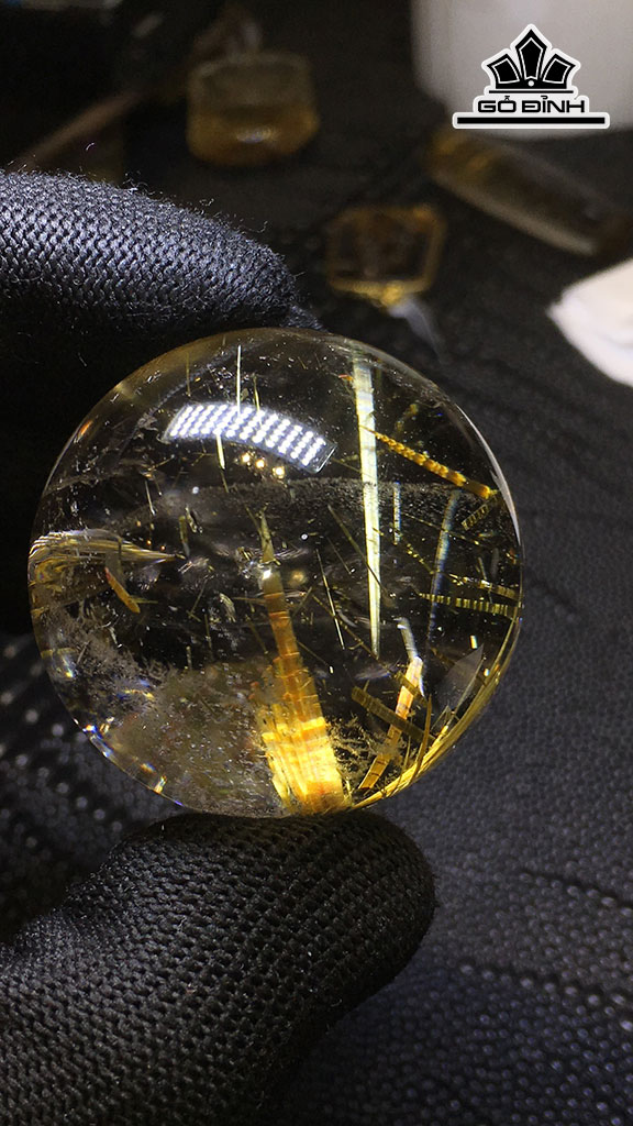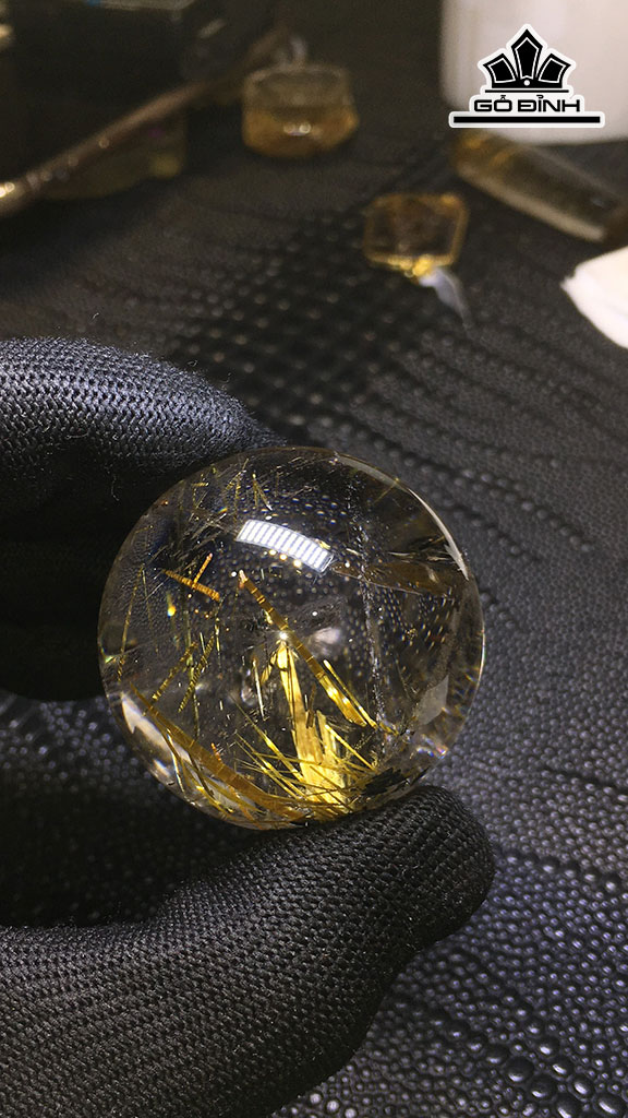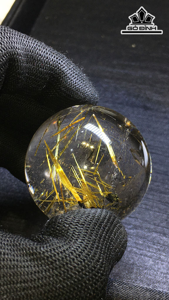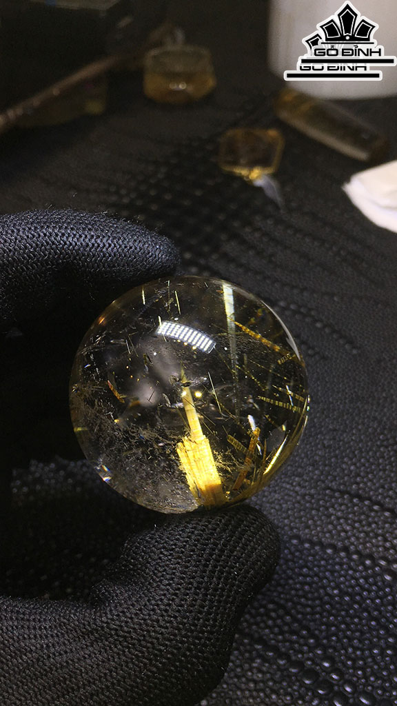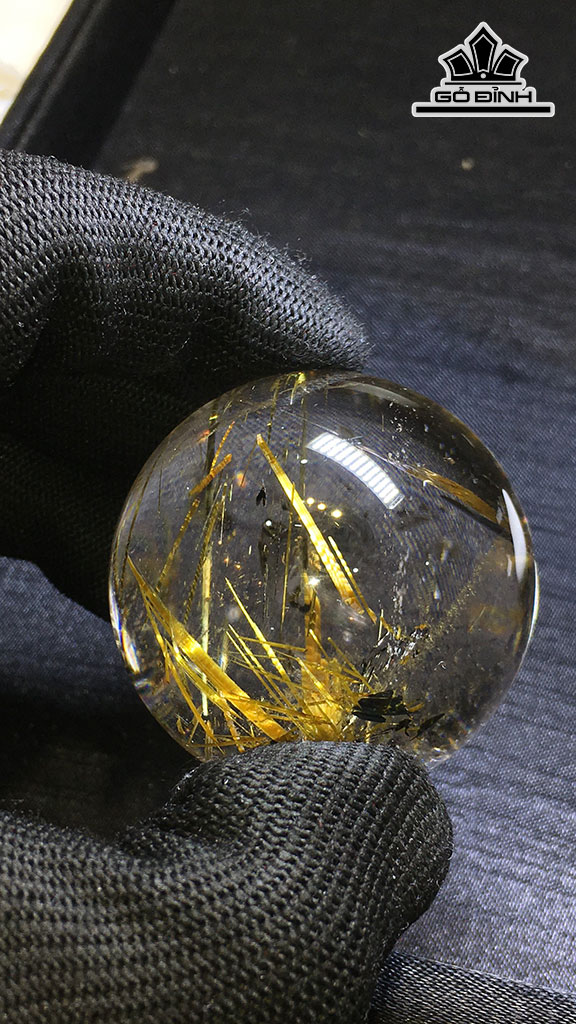 Bi Cầu Đá Thạch Anh Tóc Vàng Đường Kính Hạt 42,7 (mm) 107,7gr