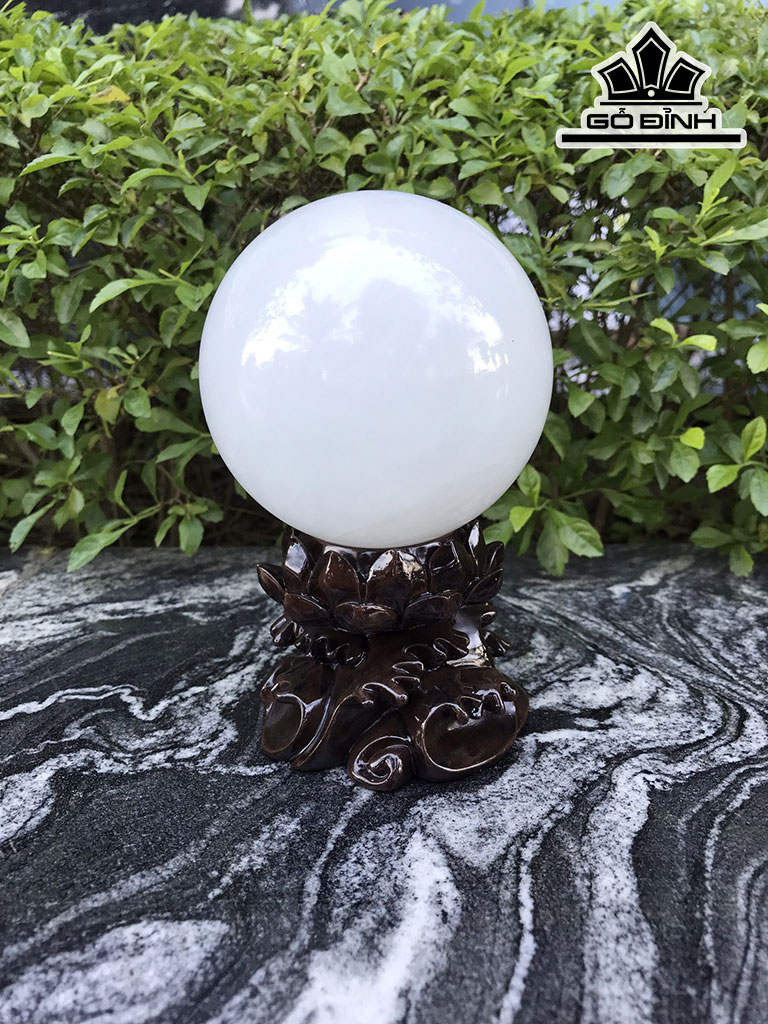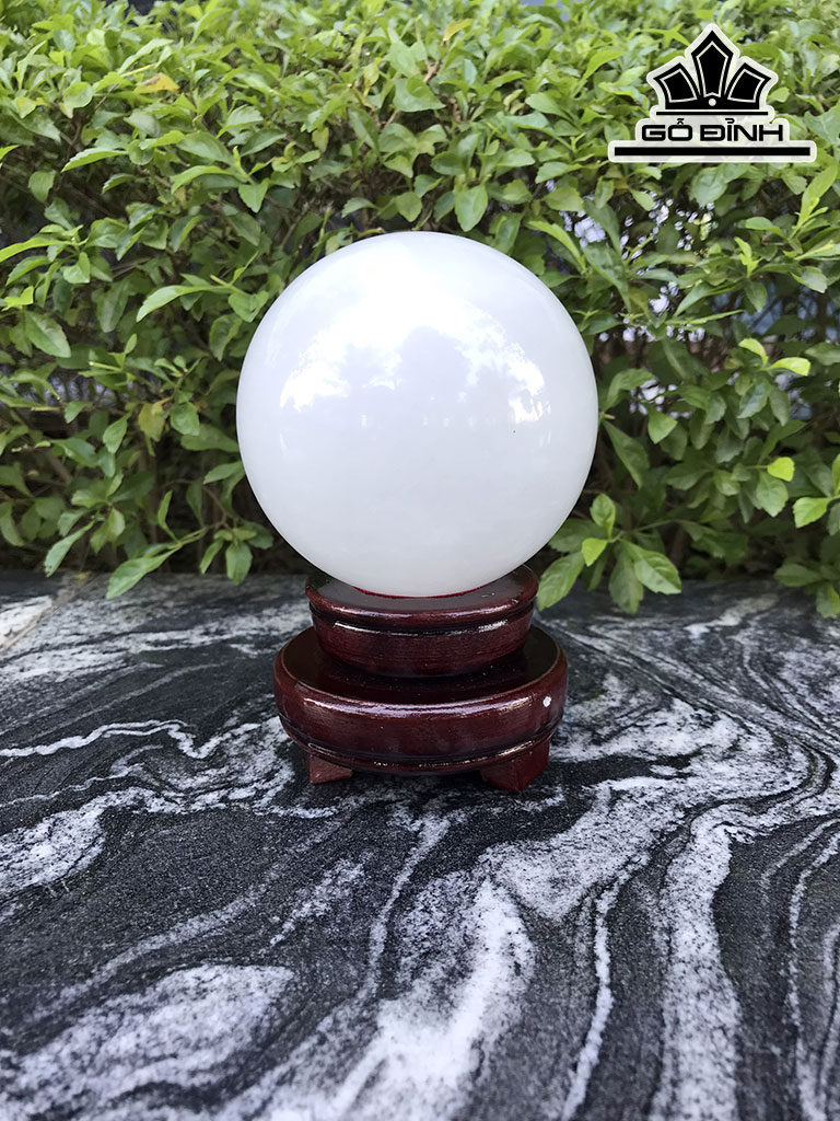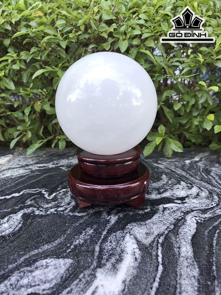 Bi Cầu Đá Calcite Trắng Ánh Titan Đường Kính Hạt 9,5 (cm) 9,5cts 1,15kg