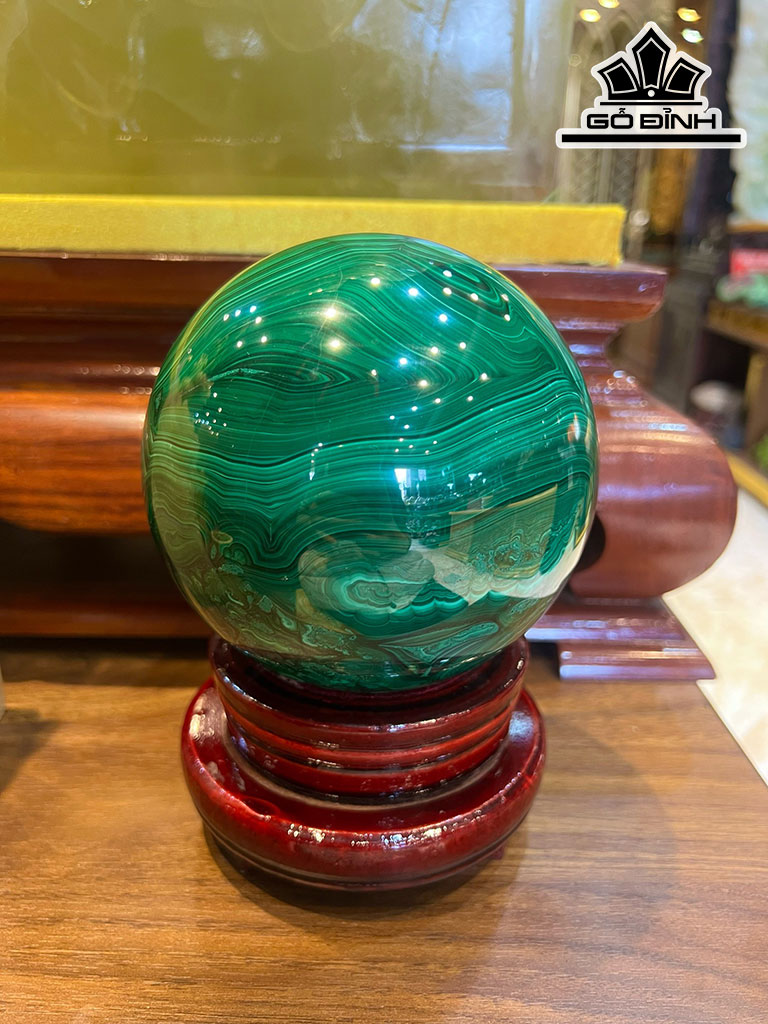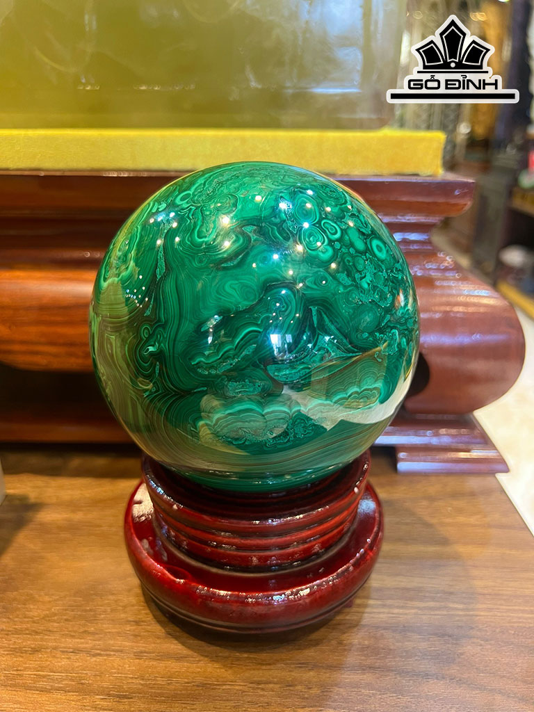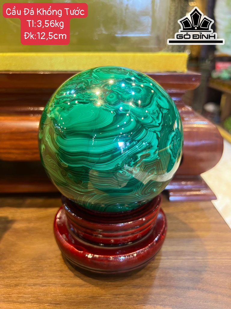Bi Cầu Đá Khổng Tước (Malachite) Đường Kính Hạt 12,5 (cm) 3,56kg