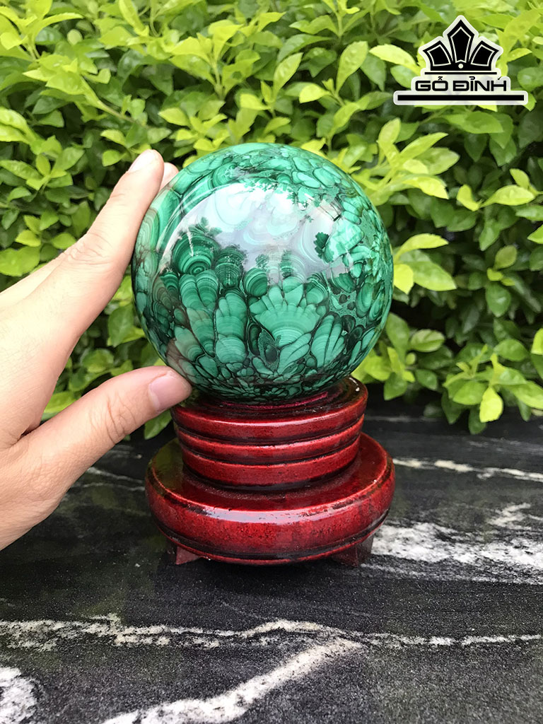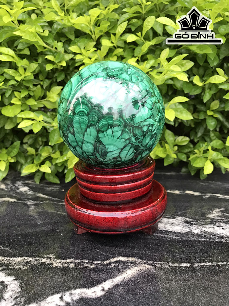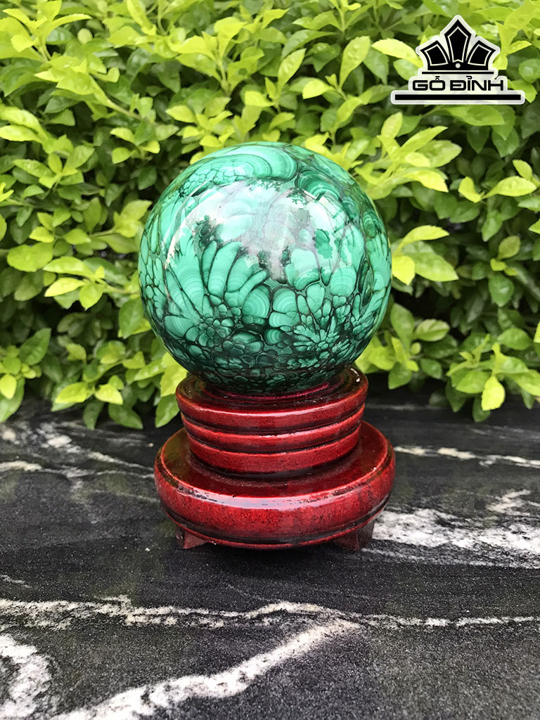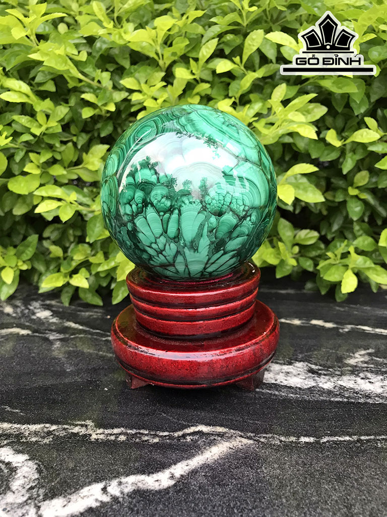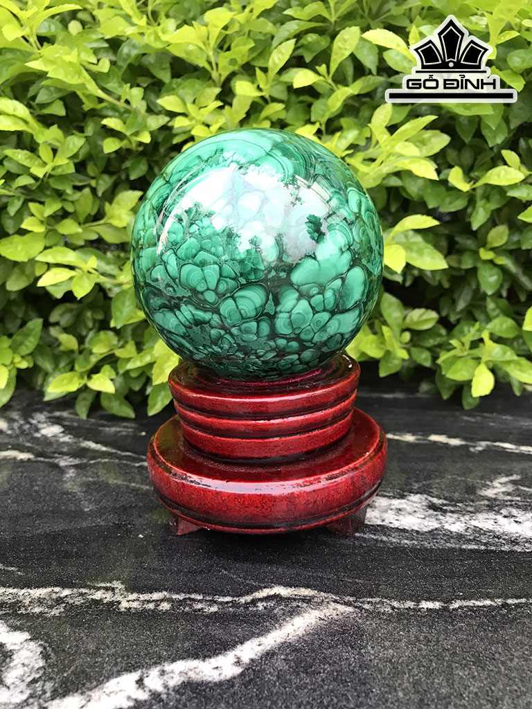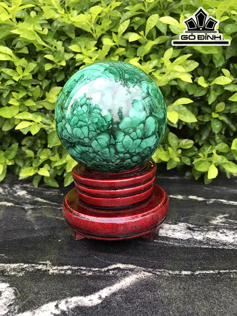 Bi Cầu Đá Khổng Tước (Malachite) Đường Kính Hạt 9,5 (cm) 1,46kg