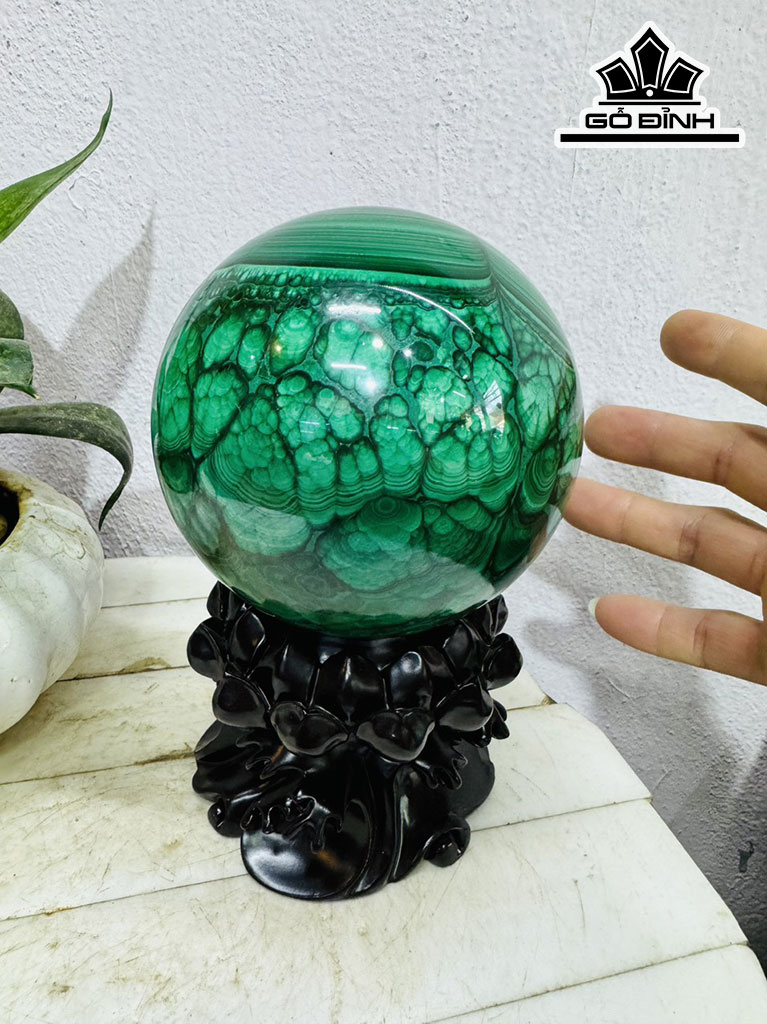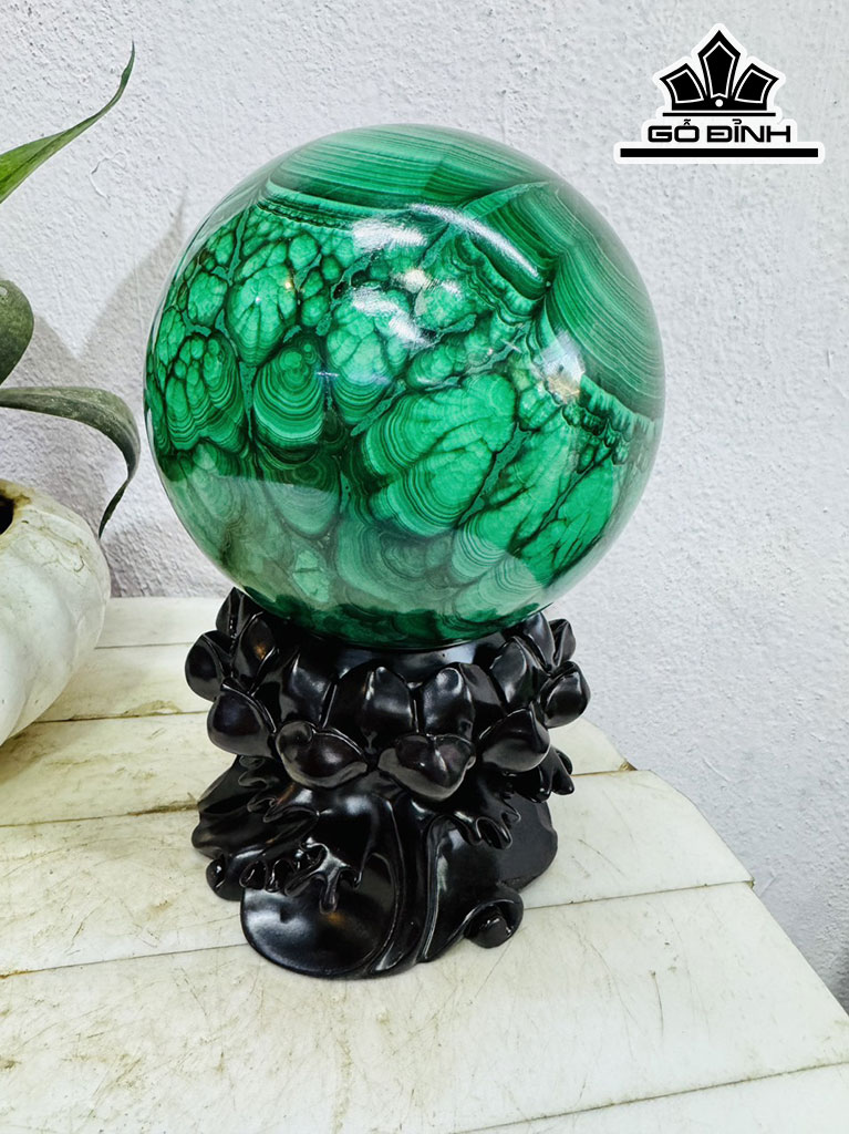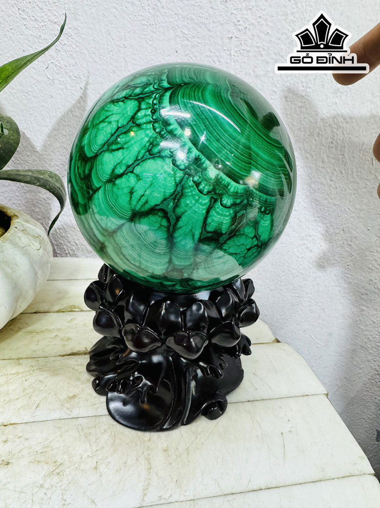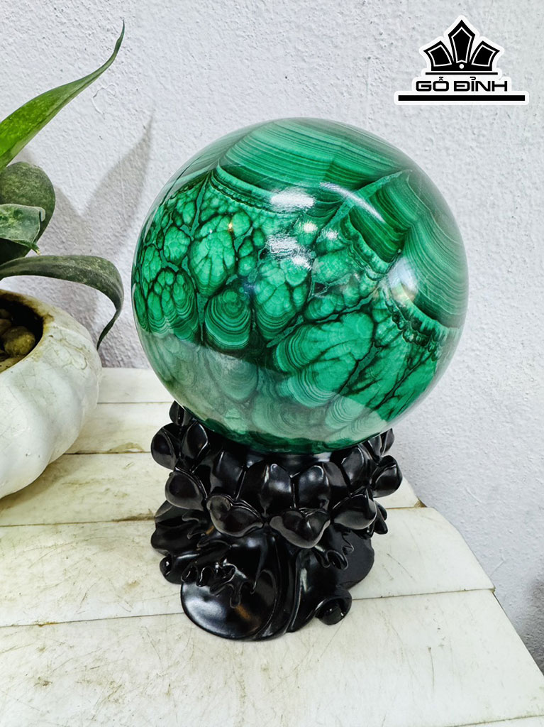 Bi Cầu Đá Lông Công (Malachite) Đường Kính Hạt 12 (cm) 3,45kg