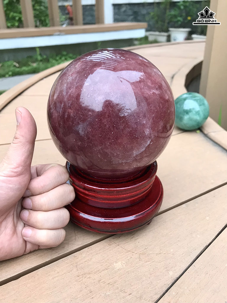 Bi Cầu Đá Thạch Anh Dâu Tây Hồng Đường Kính Hạt 12 (cm) 2,3kg