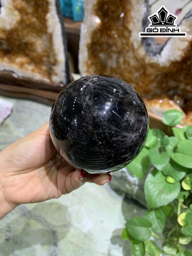 Bi Cầu Đá Thạch Anh Đen Đường Kính Hạt 8 (cm) 0,8kg