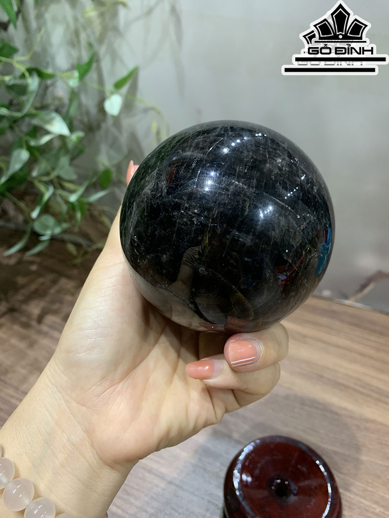Bi Cầu Đá Thạch Anh Đen Đường Kính Hạt 8,3 (cm) 0,8kg