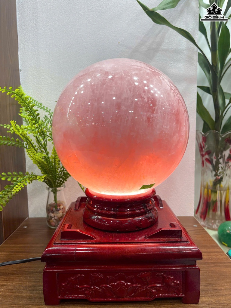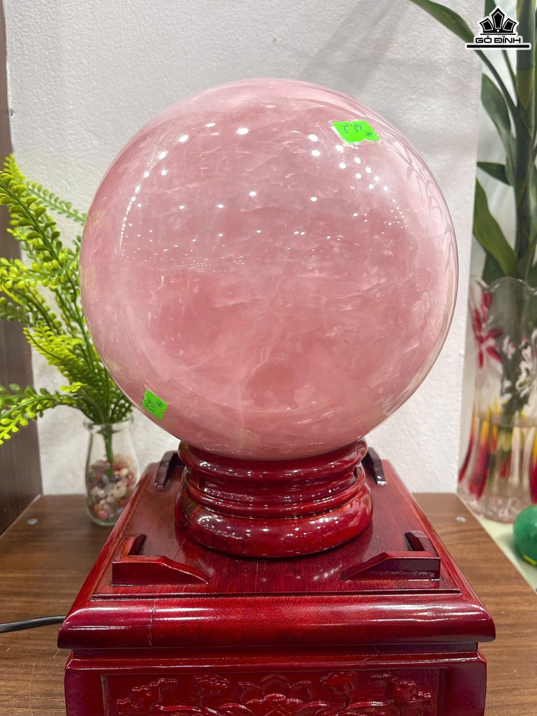 Bi Cầu Đá Thạch Anh Hồng Đường Kính 19,5 (cm) 12,2kg