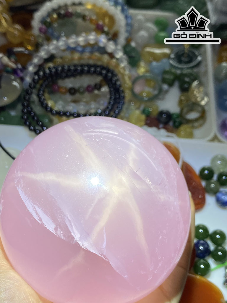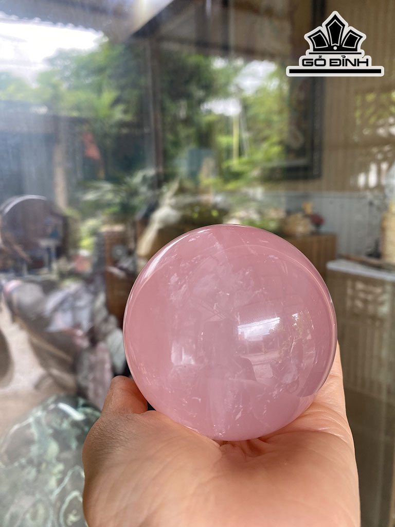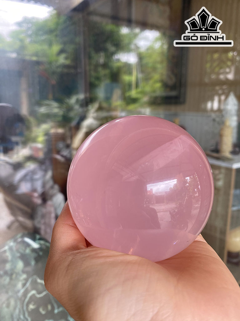 Bi Cầu Đá Thạch Anh Hồng Đường Kính 7,6 (cm) 630g