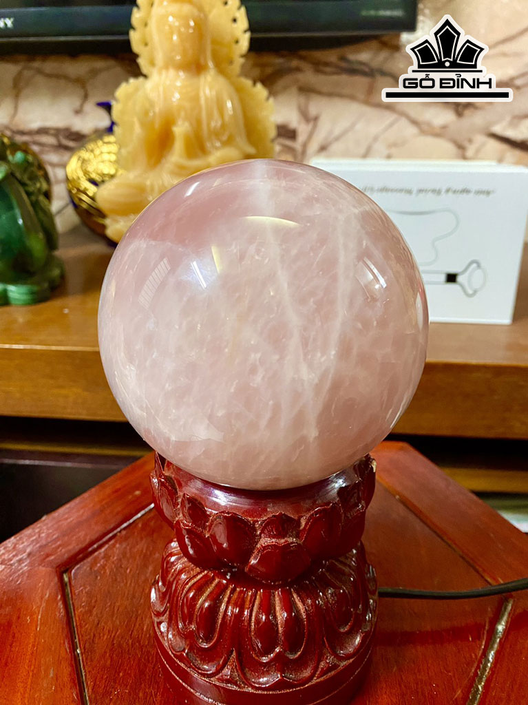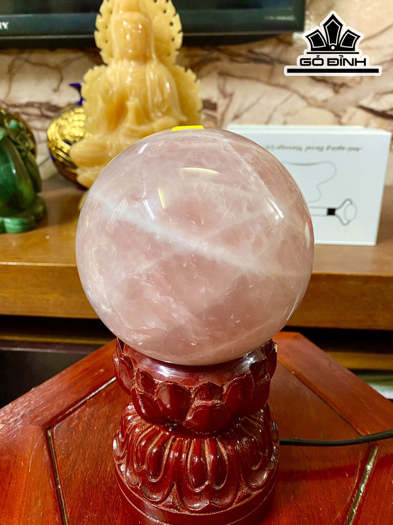 Bi Cầu Đá Thạch Anh Hồng Đường Kính Hạt 10 (cm) 1,43kg