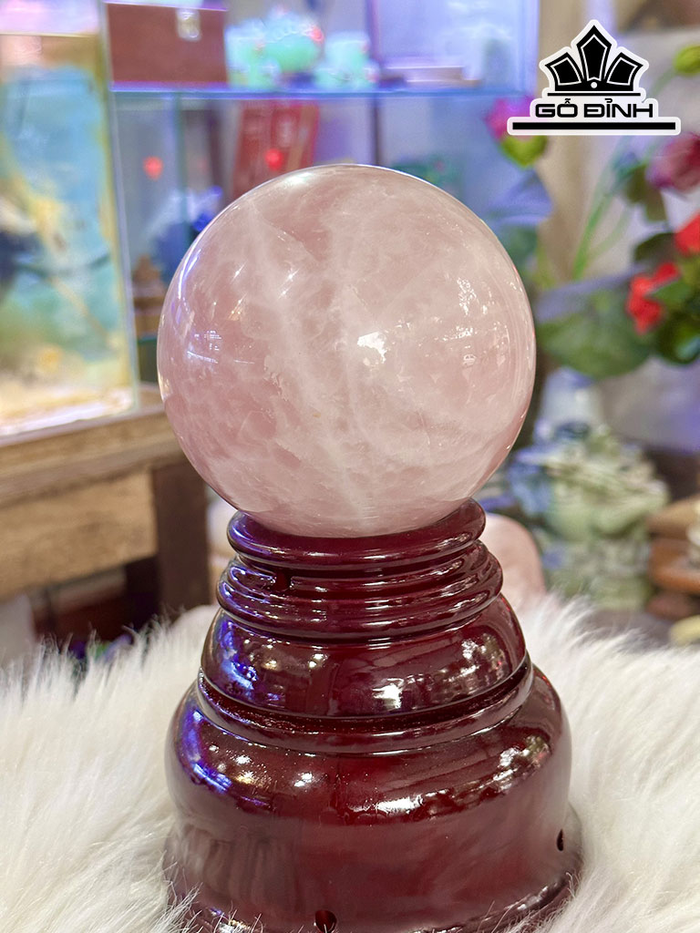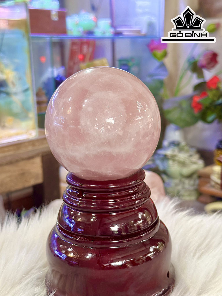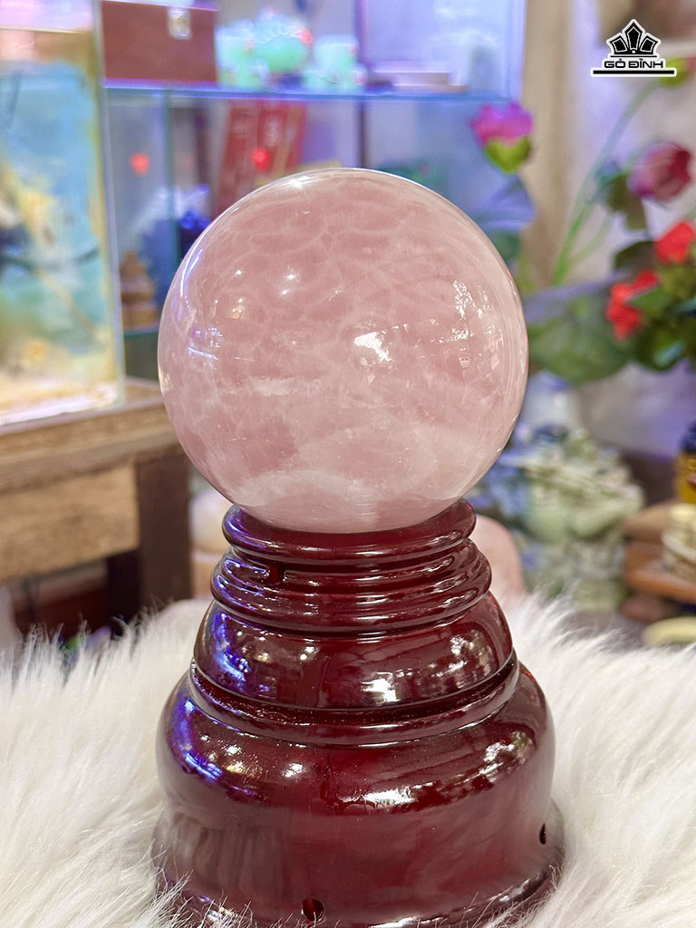 Bi Cầu Đá Thạch Anh Hồng Đường Kính Hạt 10 (cm) 1,61kg