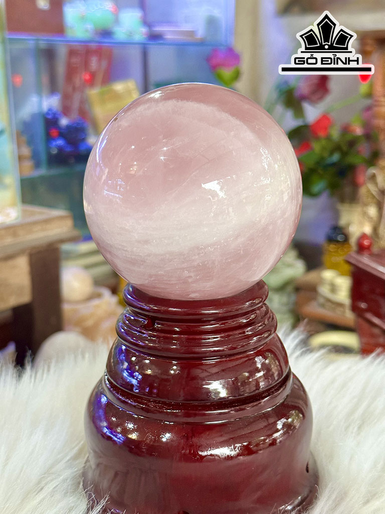 Bi Cầu Đá Thạch Anh Hồng Đường Kính Hạt 10 (cm) 1,72kg