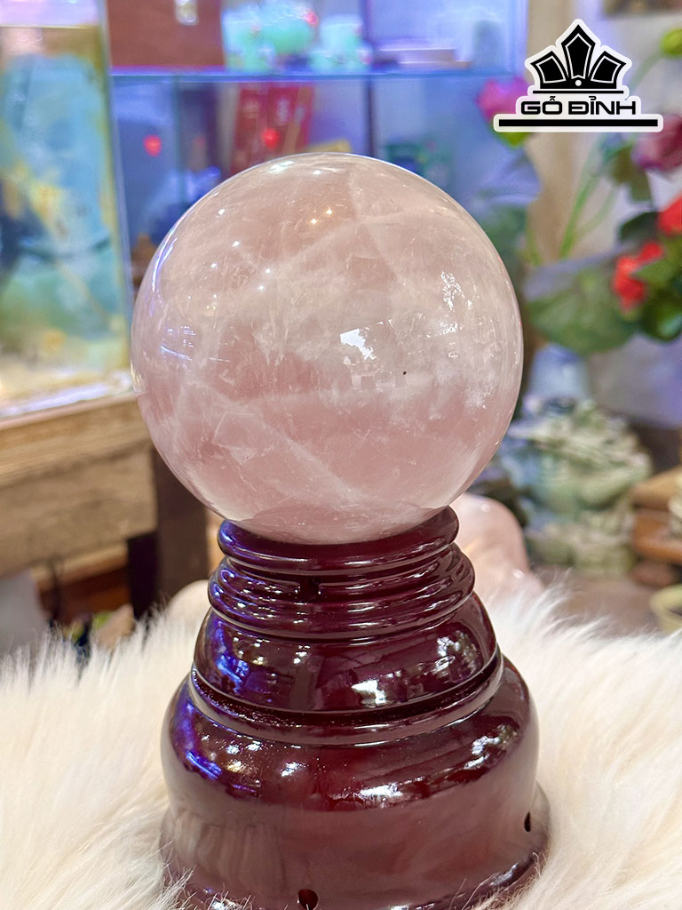 Bi Cầu Đá Thạch Anh Hồng Đường Kính Hạt 11 (cm) 2,16kg