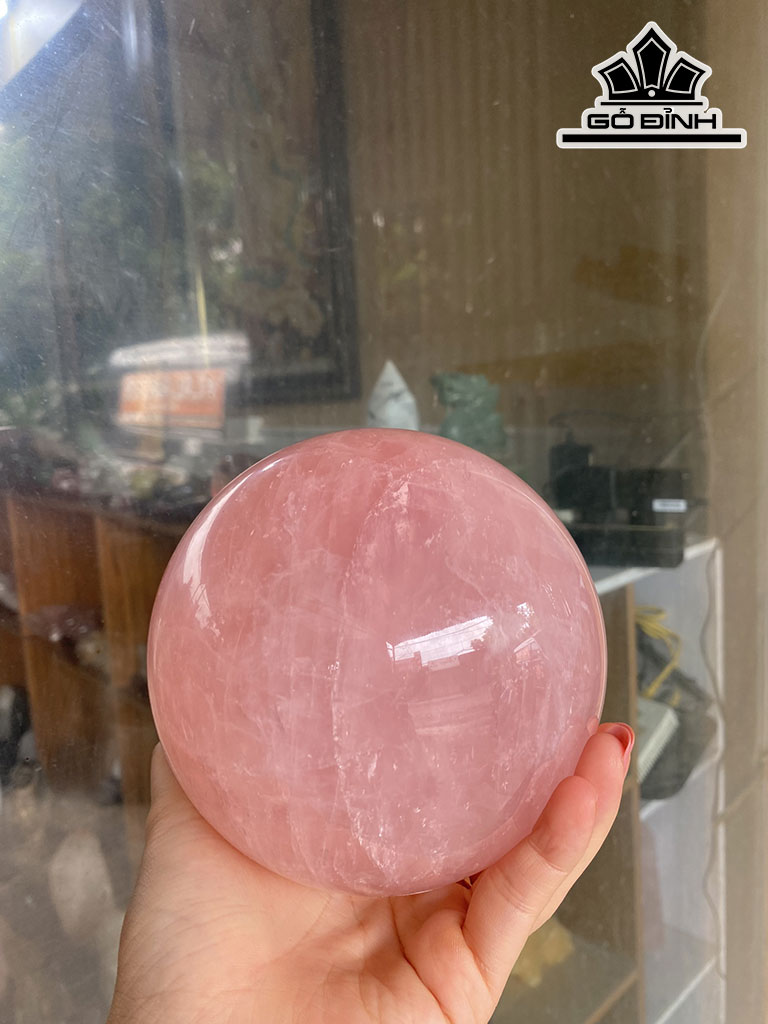 Bi Cầu Đá Thạch Anh Hồng Đường Kính Hạt 12 (cm) 2,81kg