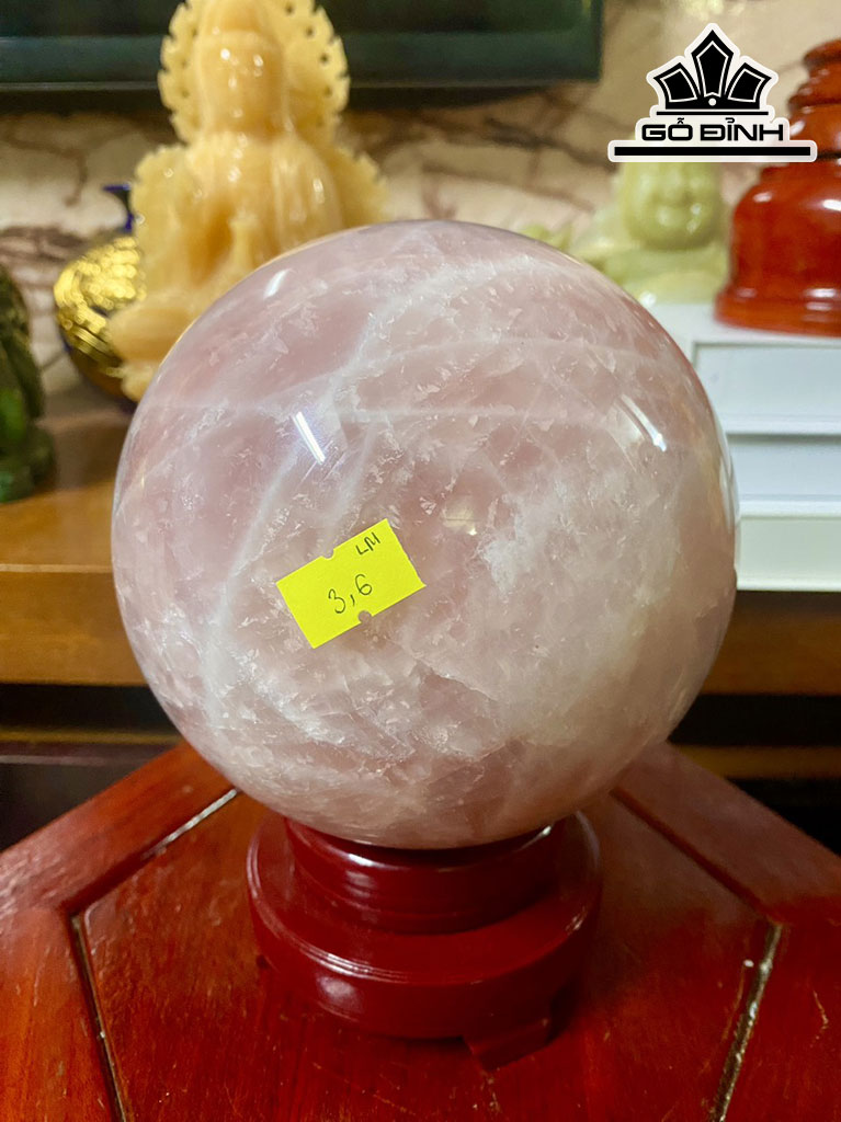 Bi Cầu Đá Thạch Anh Hồng Đường Kính Hạt 13 (cm) 3,6kg