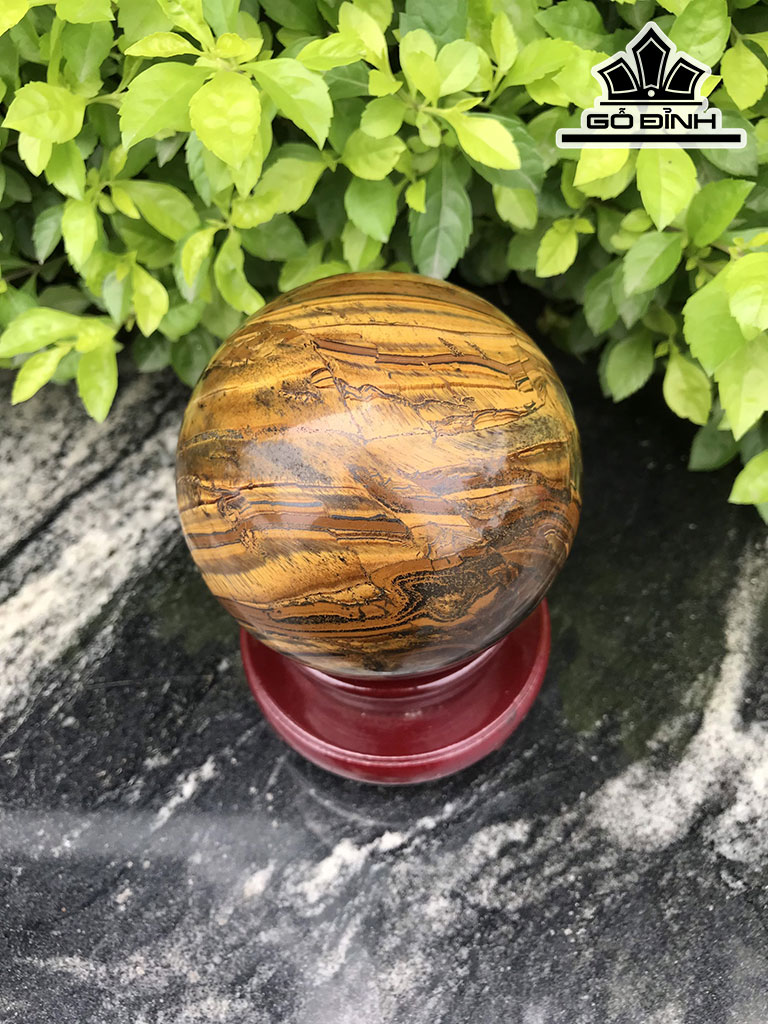 Bi Cầu Đá Thạch Anh Mắt Hổ Ánh Vàng Đường Kính Hạt 9,5 (cm) 1,3kg