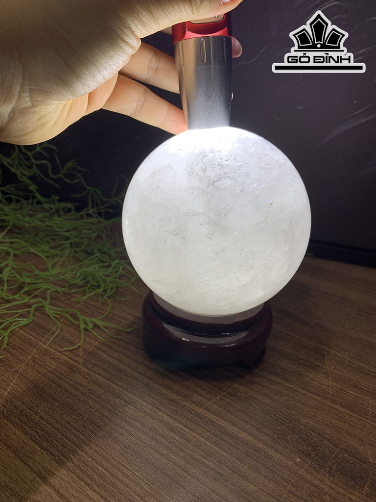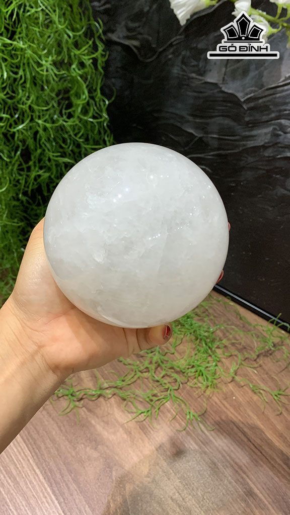 Bi Cầu Đá Thạch Anh Trắng Đường Kính Hạt 9,5 (cm) 1,35kg