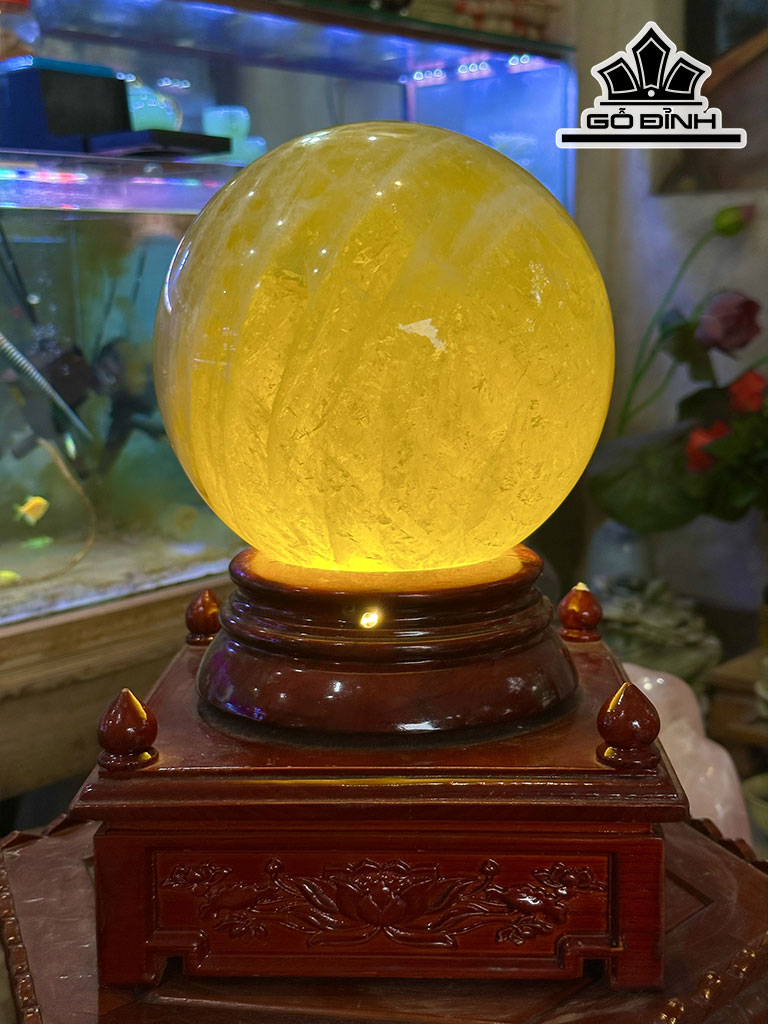 Bi Cầu Đá Thạch Anh Vàng Đường Kính Hạt 20 (cm) 10,05kg