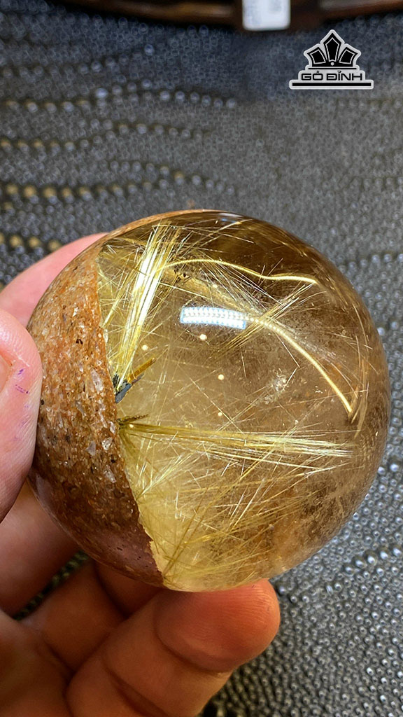Bi Cầu Hoa Thị Đá Thạch Anh Tóc Vàng Đường Kính 52,8 (mm) 180g