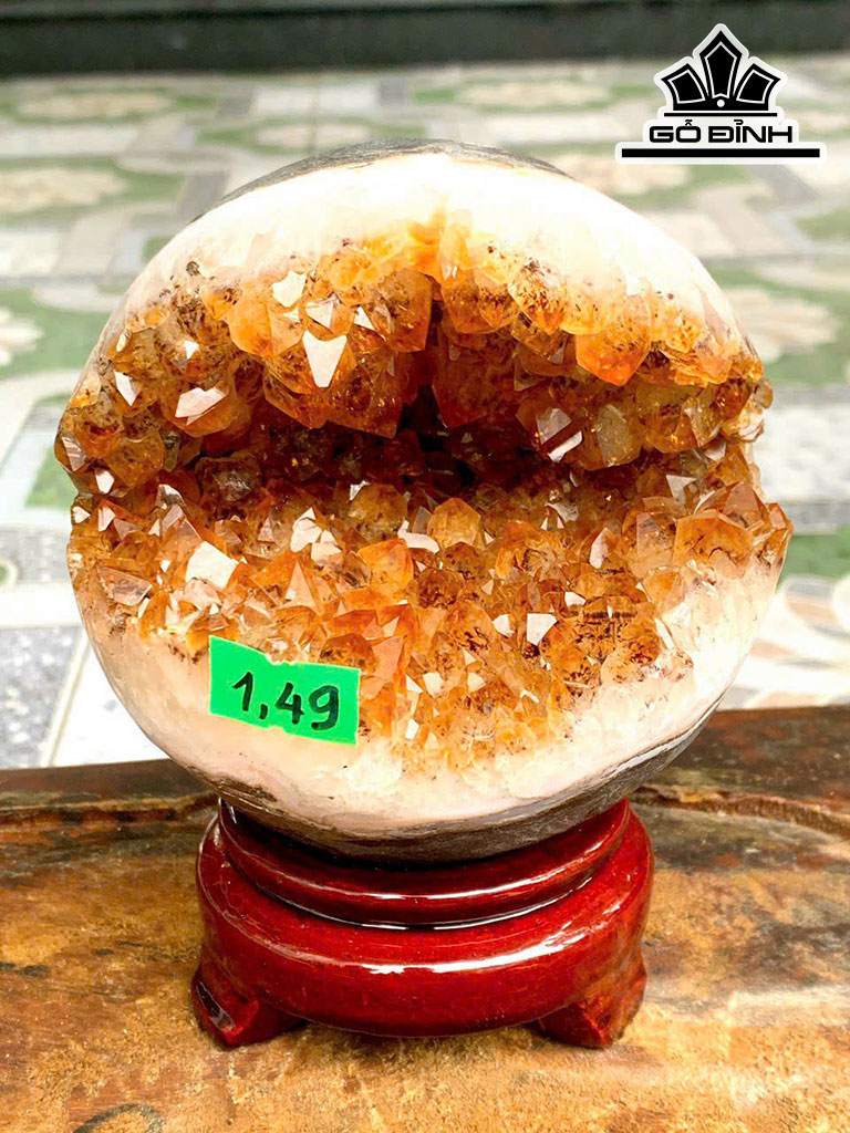 Bi Cầu Mặt Cười Đá Thạch Anh Vàng Đường Kính Hạt 10 - 12 (cm) 1,49kg