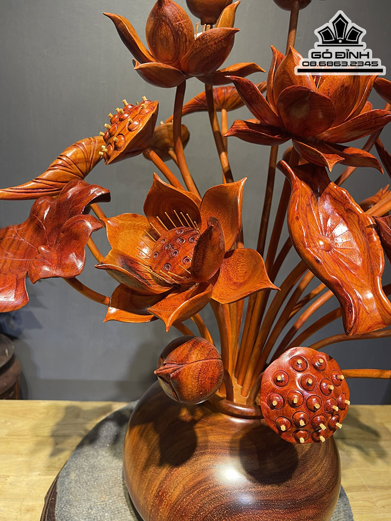 Bình 25 Hoa Sen Gỗ Hương Cao 81 Ngang 60 Sâu 50 (cm)