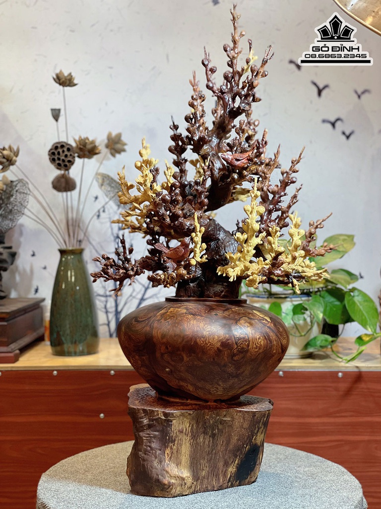 Bình Bông Mai Điểu Gỗ Cẩm Cao 100 Ngang 50 Sâu 45 (cm)
