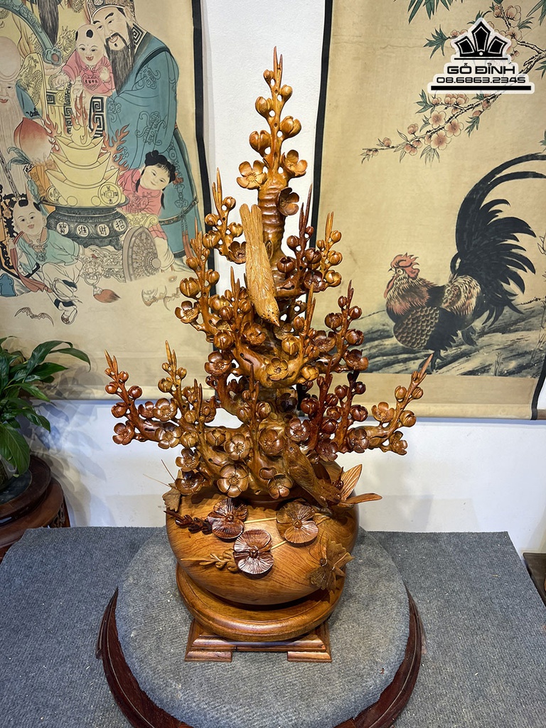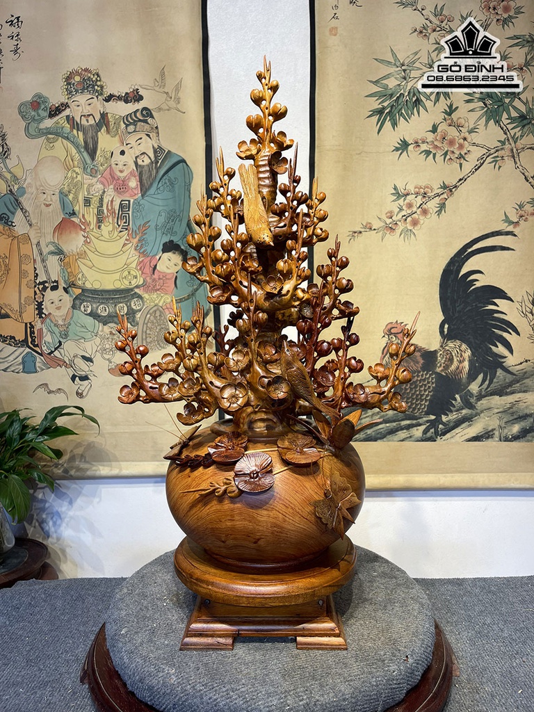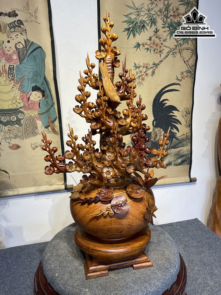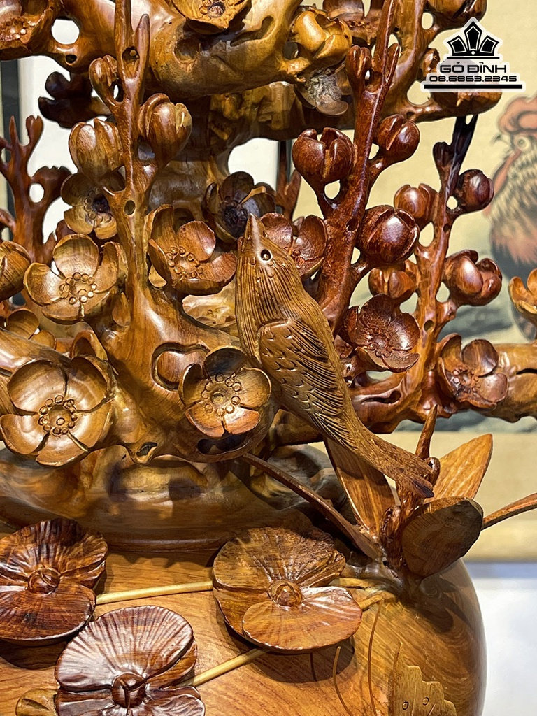 Bình Bông Mai Điểu Gỗ Hương Cao 77 Ngang 43 Sâu 29 n(cm)