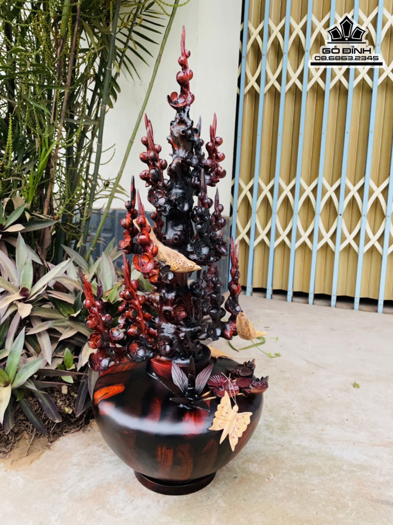 Bình Bông Mai Điểu Gỗ Trắc