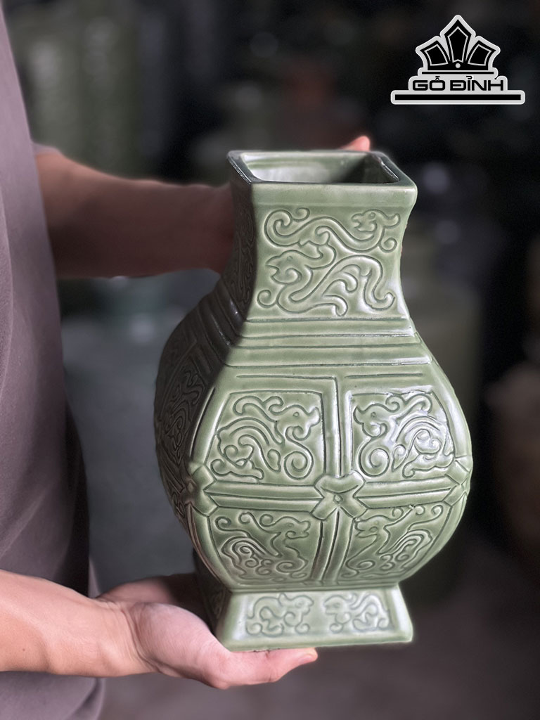 Bình Hoa Dáng Vuông Gốm Bát Tràng Cao 27 Miệng 9,5 (cm)