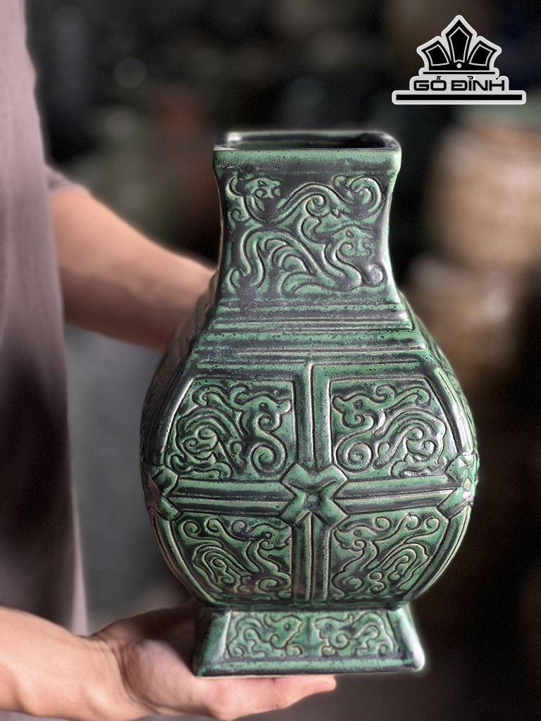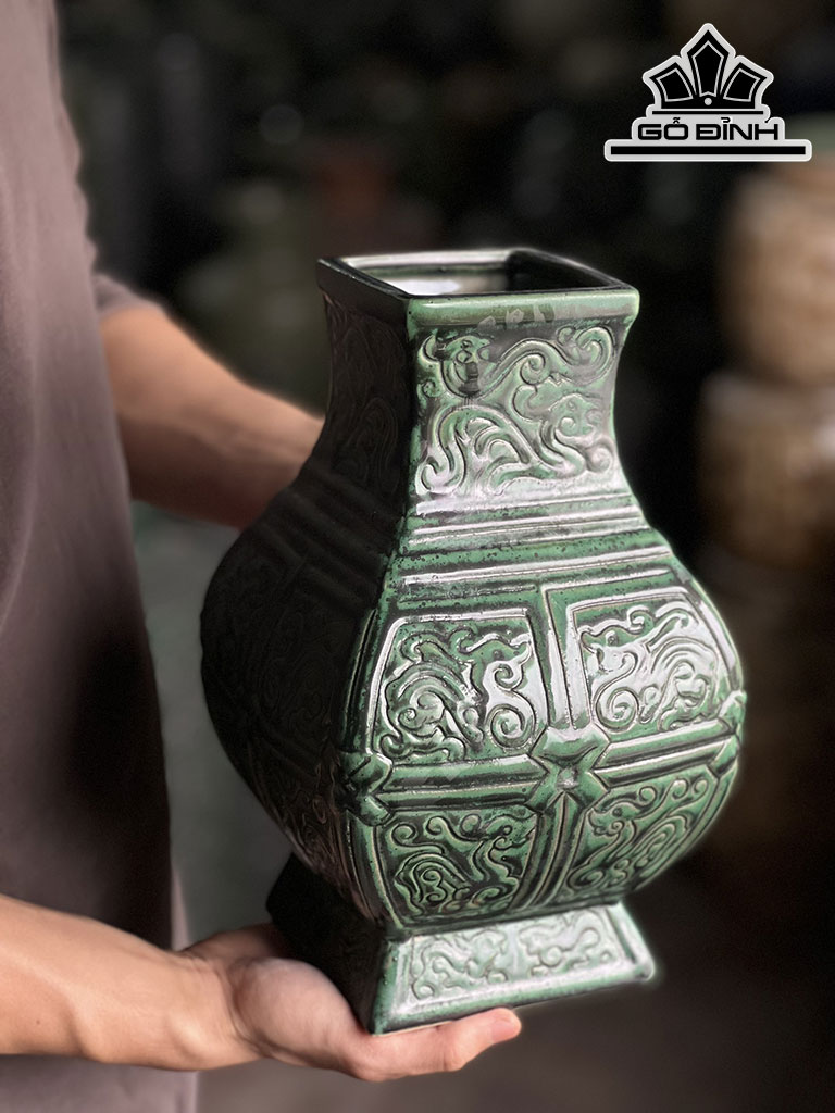 Bình Hoa Dáng Vuông Gốm Bát Tràng Cao 27 Miệng 9,5 (cm)