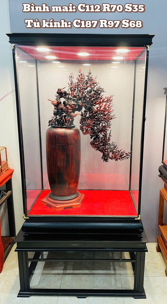 Bình Hoa Gỗ Trắc Cao 112 Ngang 70 Sâu 35 (cm) - Kèm Tủ
