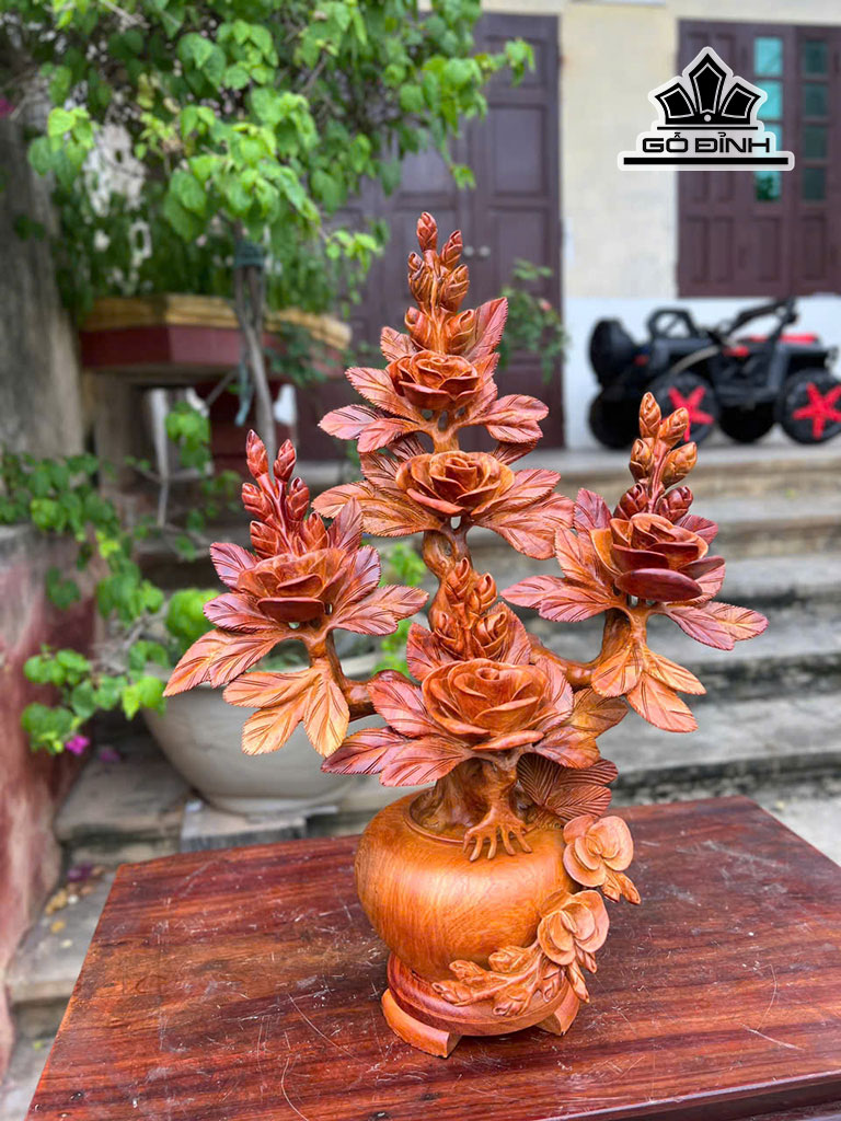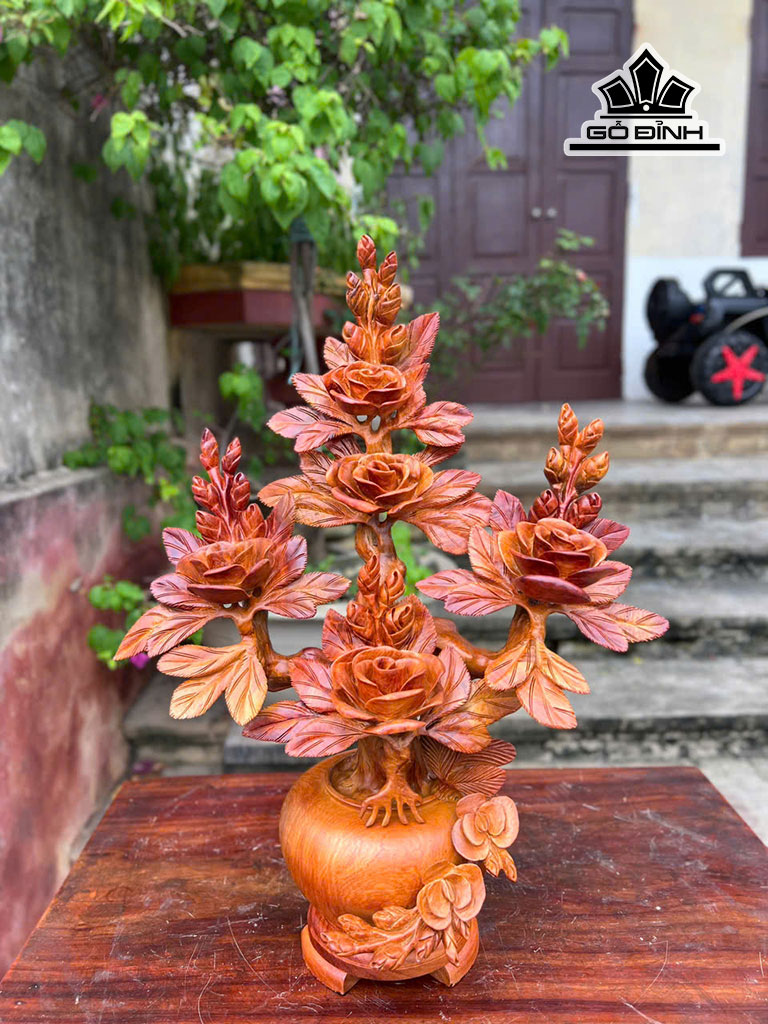 Bình Hoa Hồng Gỗ Hương Cao 50 Ngang 38 Sâu 17 (cm)