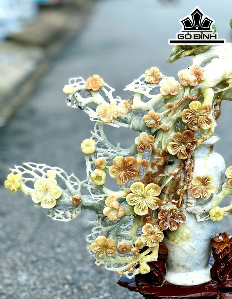 Bình Hoa Mai Bonsai Đá Serpentine Cao 48 Ngang 35 (cm) 7,4kg